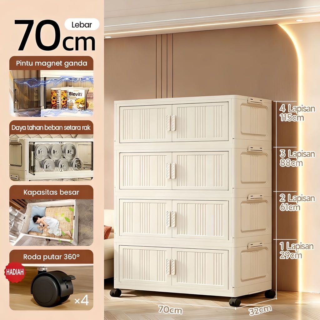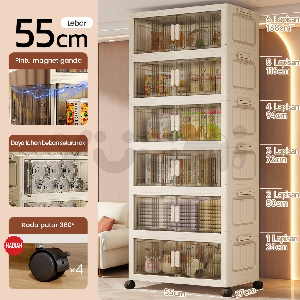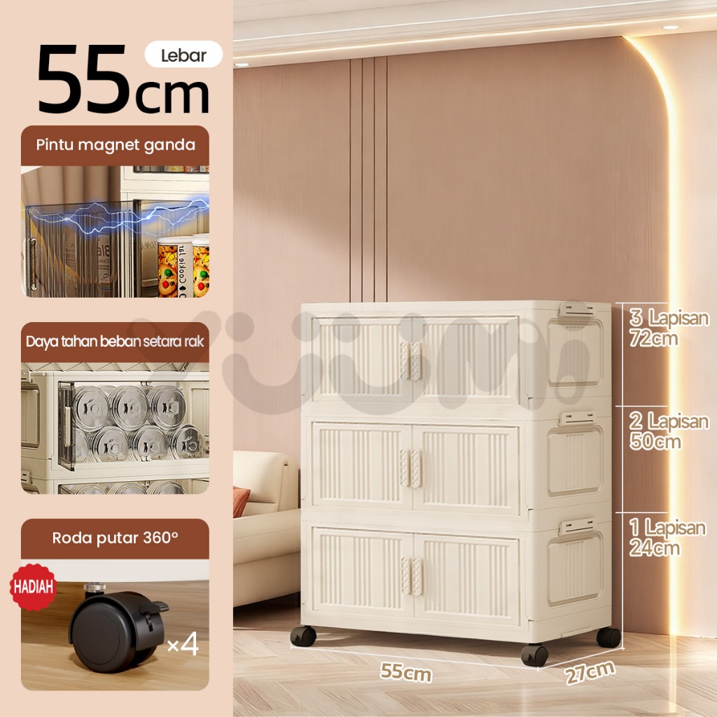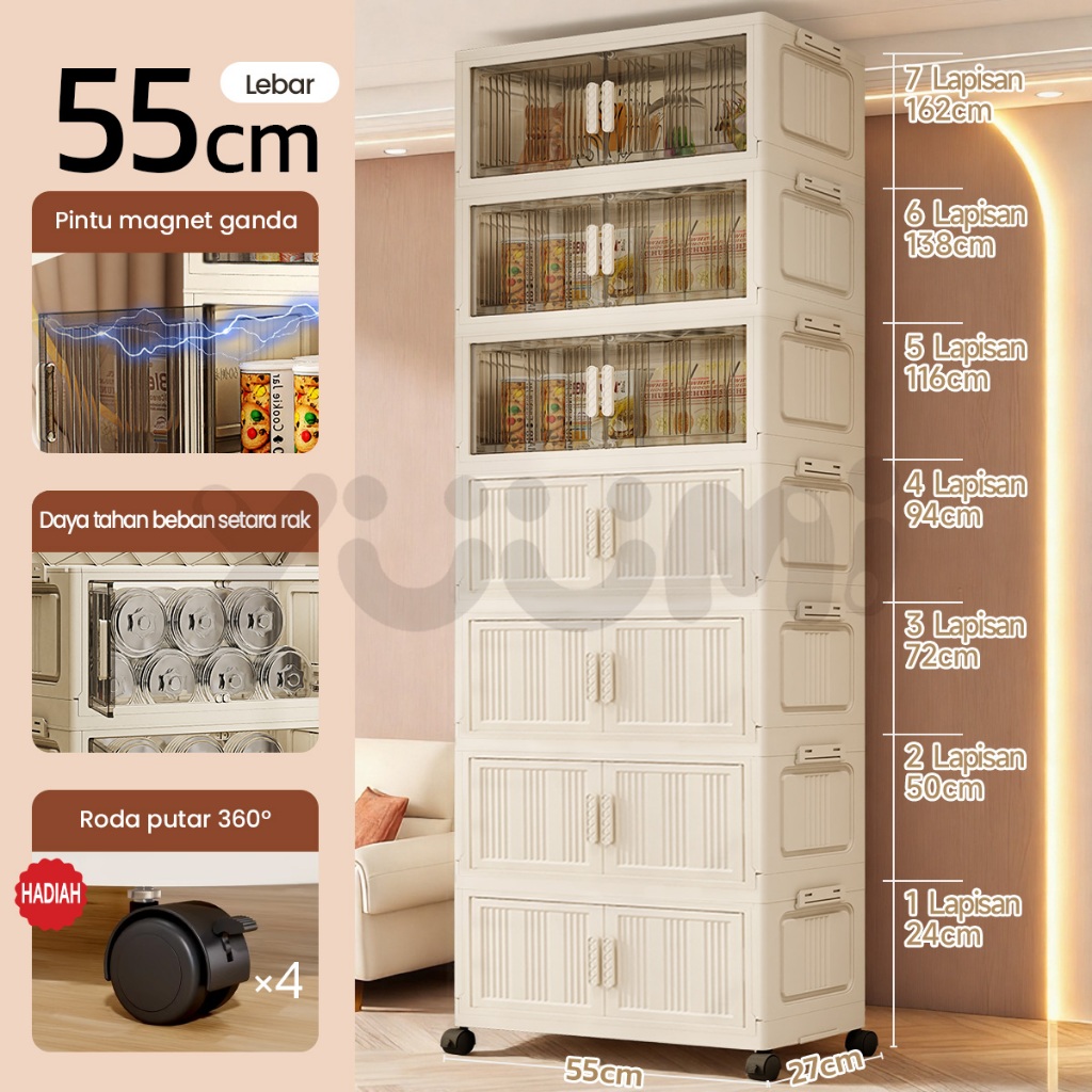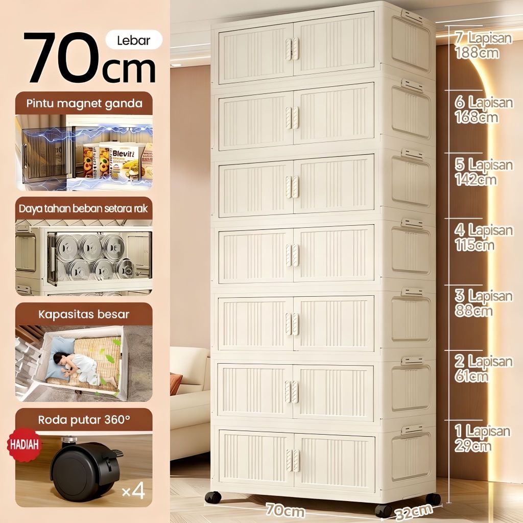 Yuumi Lemari Plastik Susun Besar - Lemari Pakaian Anak & Bayi, Rak Baju Multifungsi, Organizer Hemat Ruang, Katrol Senyap, Anti Debu