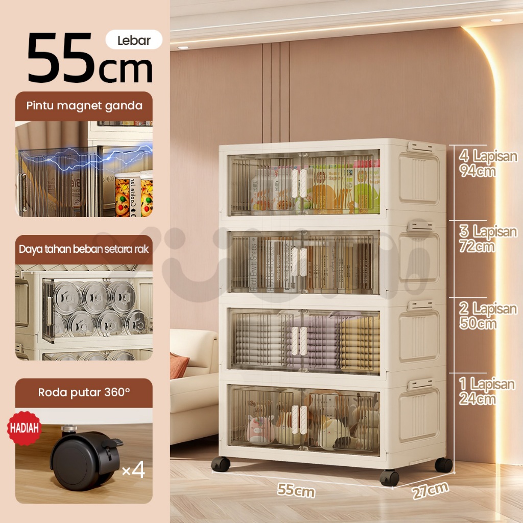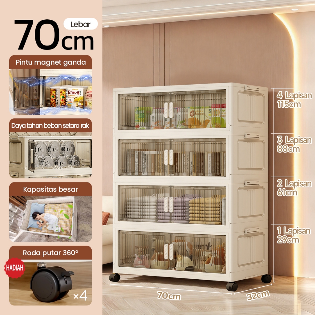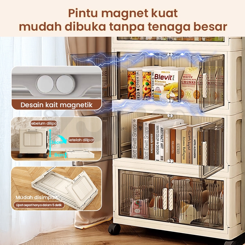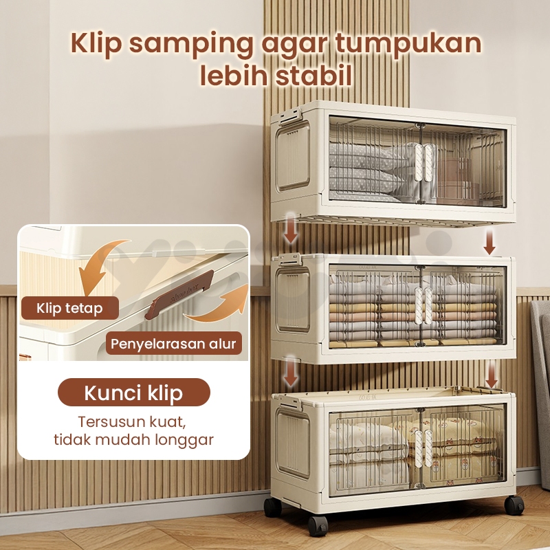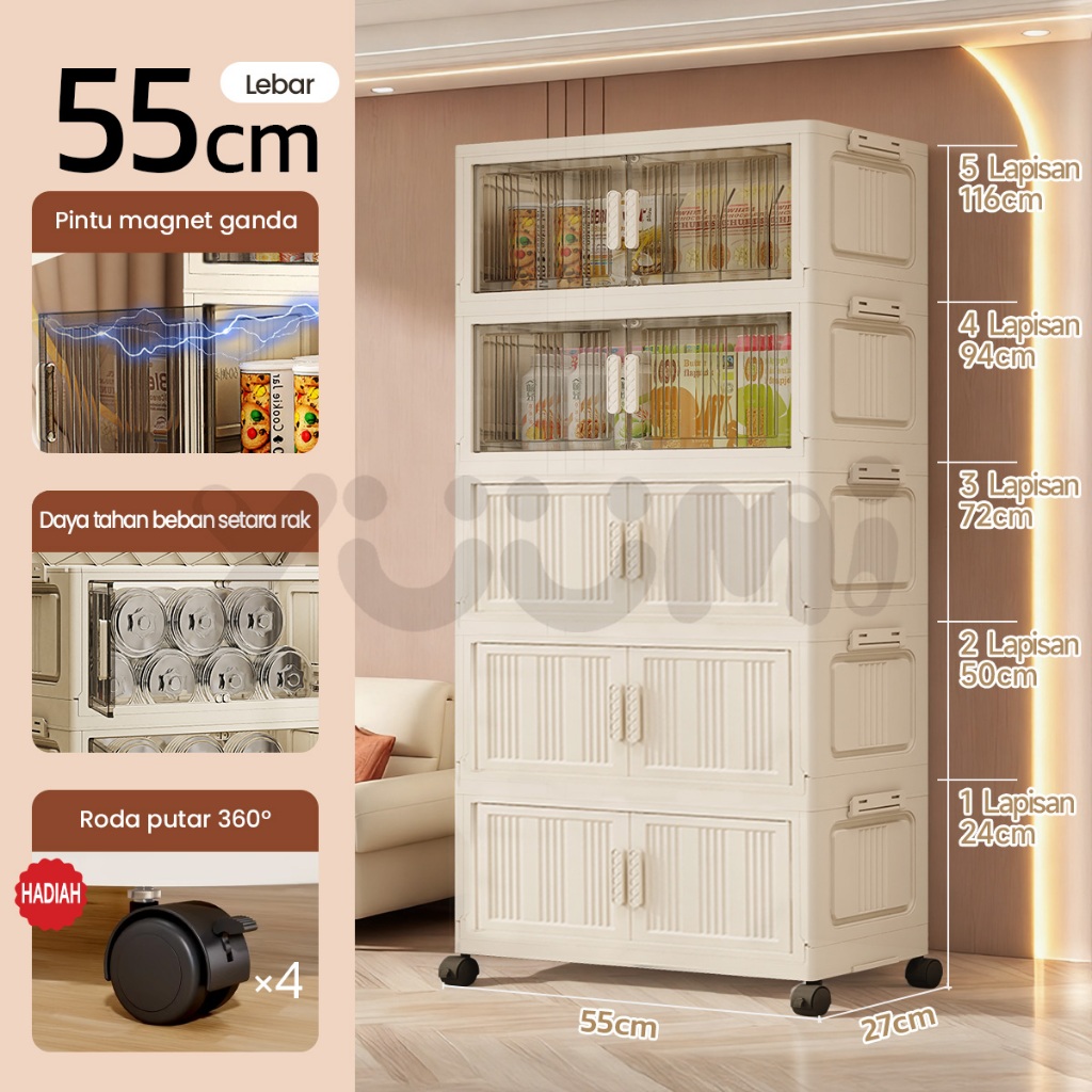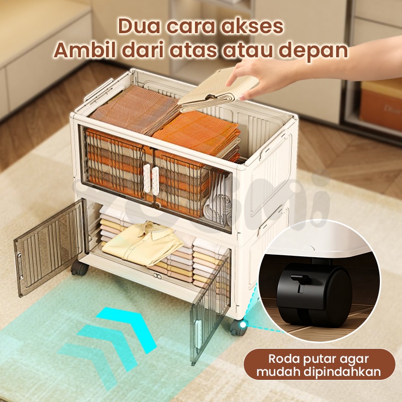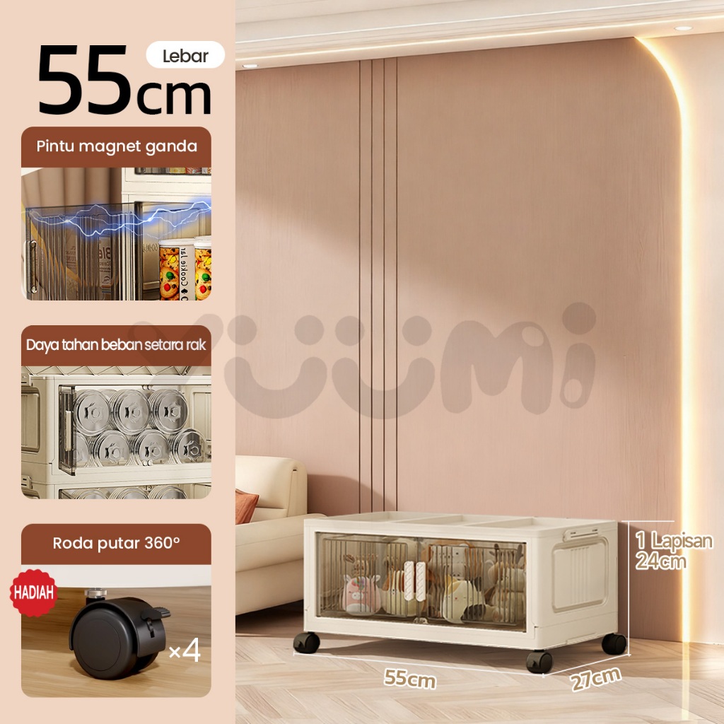 Yuumi Lemari Plastik Susun Besar - Lemari Pakaian Anak & Bayi, Rak Baju Multifungsi, Organizer Hemat Ruang, Katrol Senyap, Anti Debu