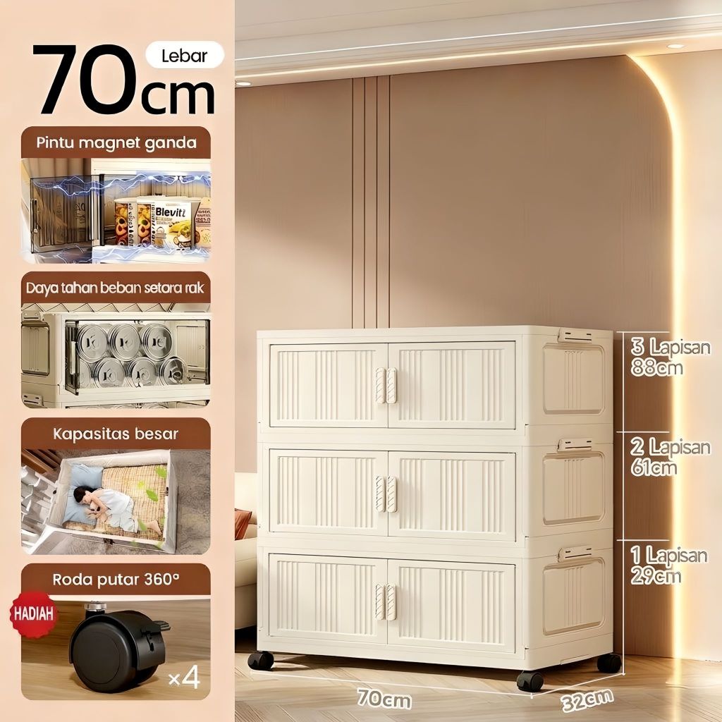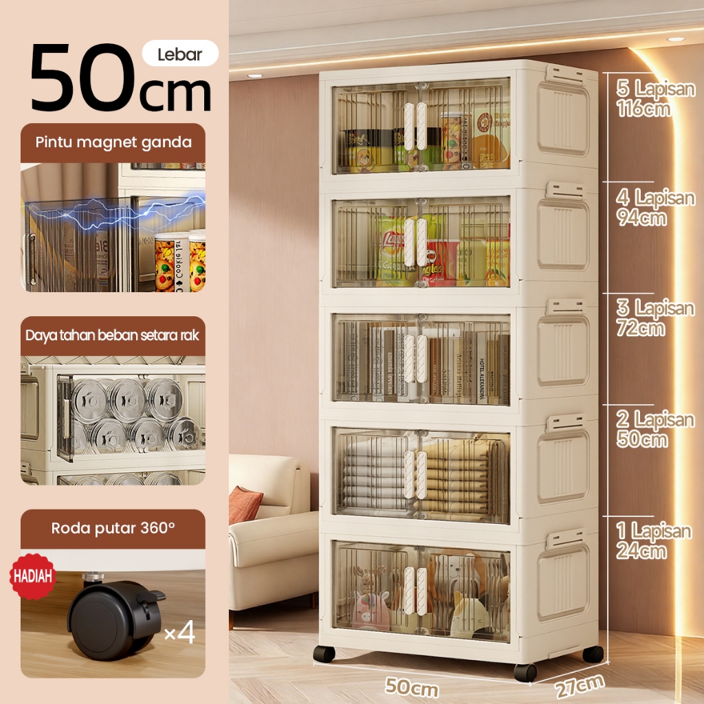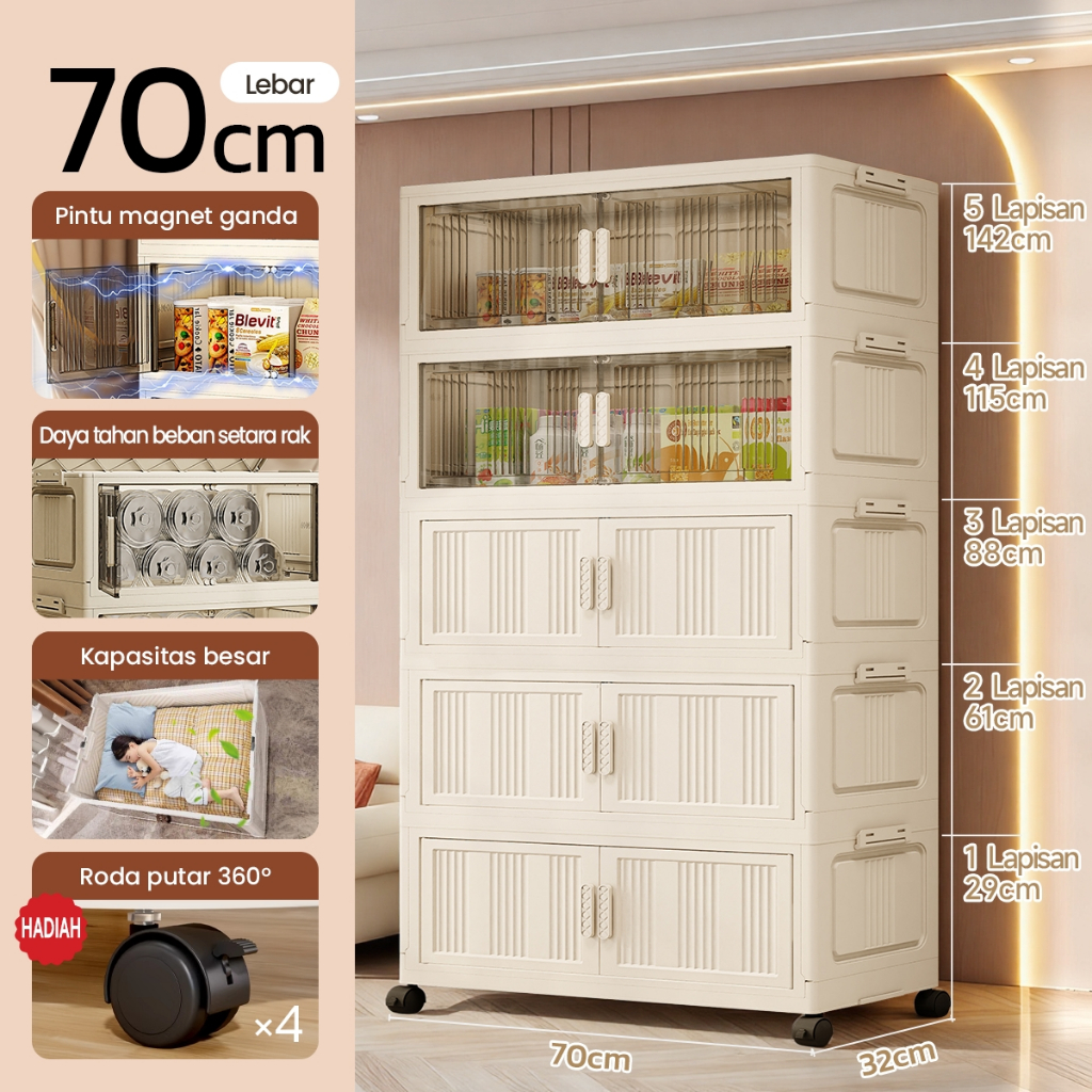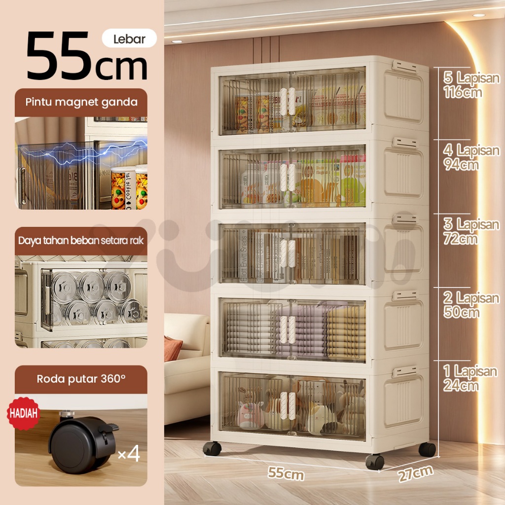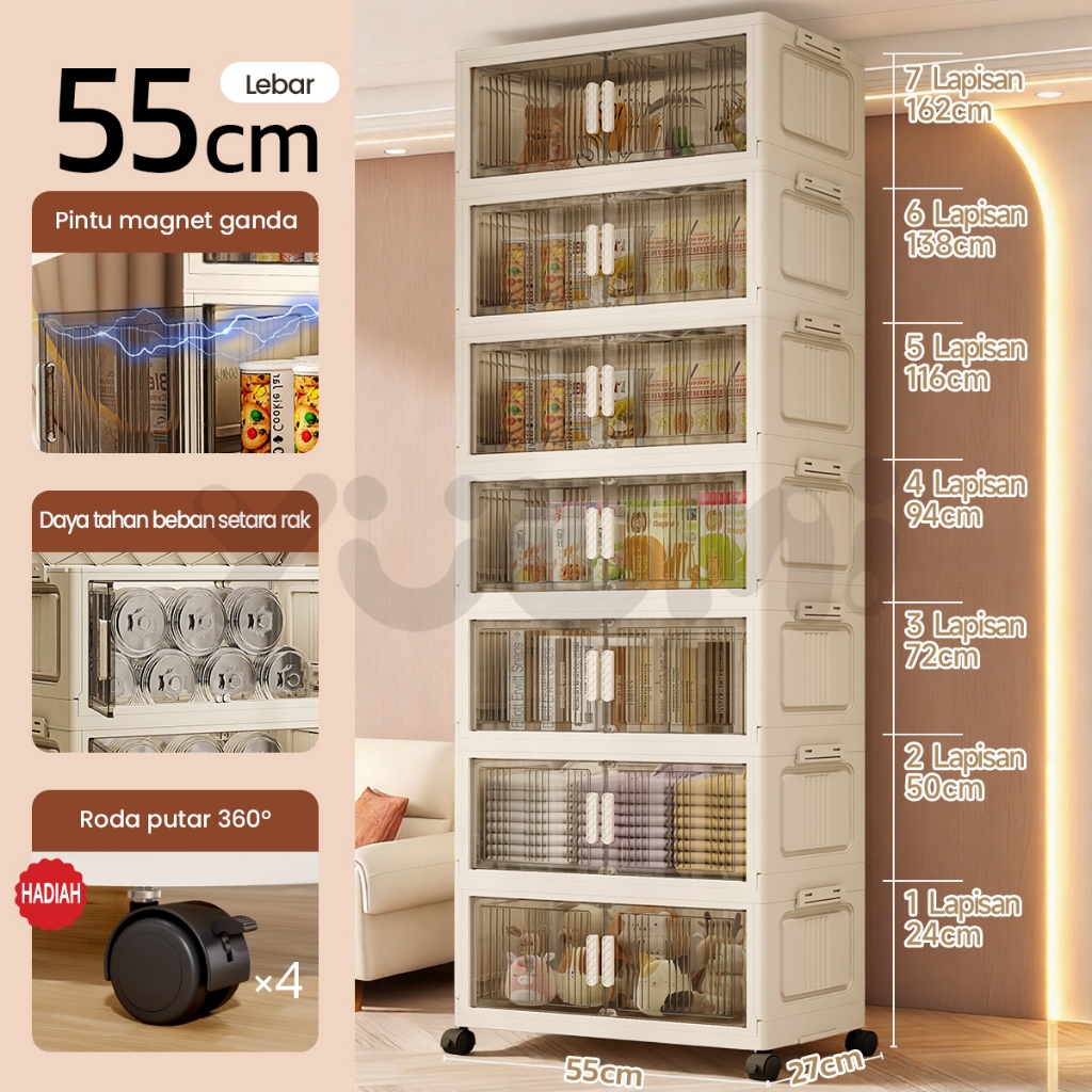 Yuumi Lemari Plastik Susun Besar - Lemari Pakaian Anak & Bayi, Rak Baju Multifungsi, Organizer Hemat Ruang, Katrol Senyap, Anti Debu