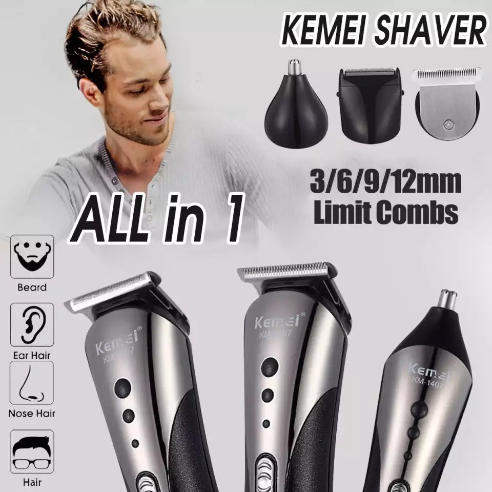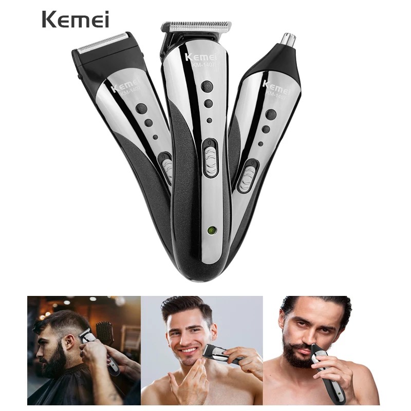 Kemei 1407 Alat Cukur Elektrik 3 in 1 Hair Clipper Shaver Rechargeable KM-1407