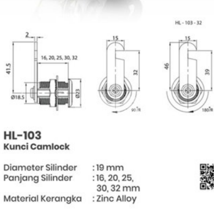 Kunci camlock / loker / boxpanel Huben 103 uk 20 , 25 , 30 mm