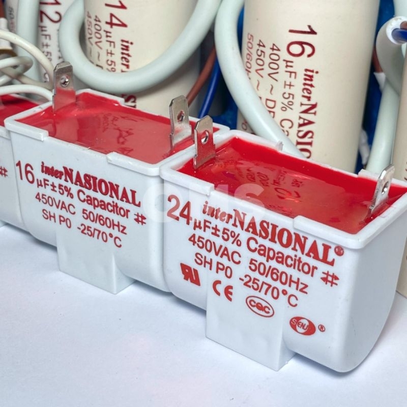 Kapasitor Bulat Pompa Air Internasional Capacitor 4-24Uf 450VAC 50/60Hz