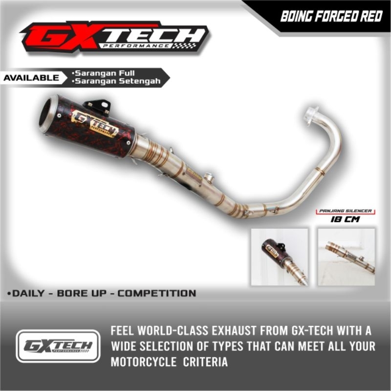 GX TECH BOING FORGED RED Knalpot MX KING – Silencer Road Race Bisa Request Sesuai Spek Mesin
