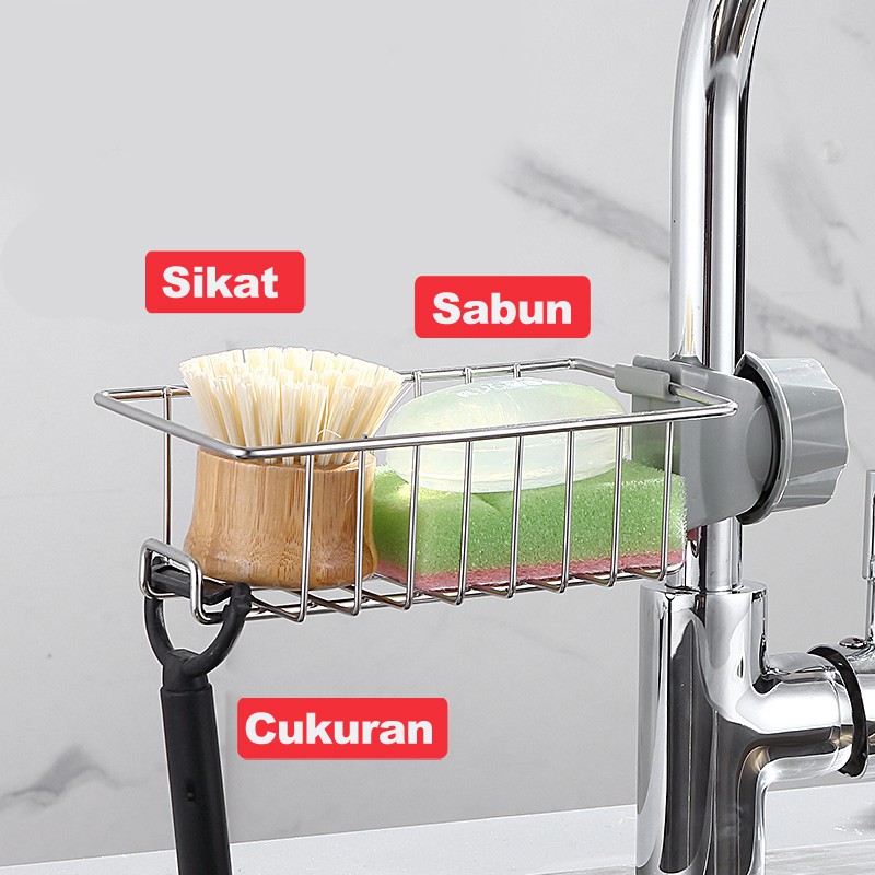 Greenland Rak Gantungan Keran Air Tempat Cuci Piring Penyimpanan Sabun Peralatan Dapur Stouge HRM105