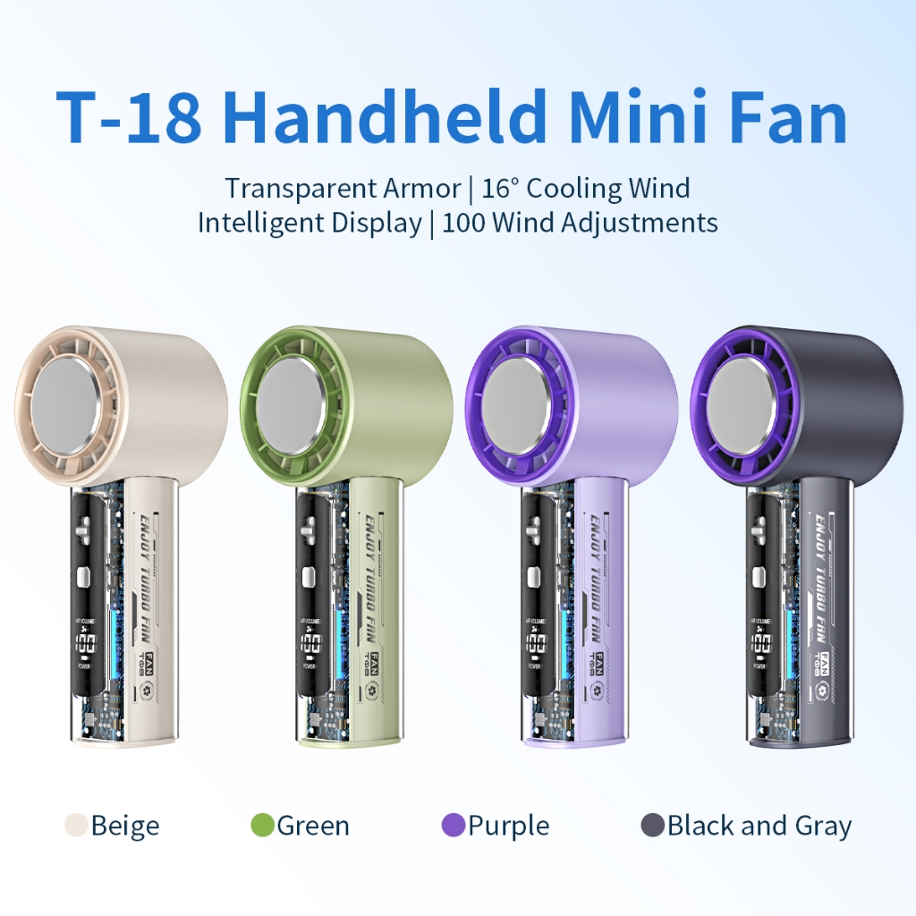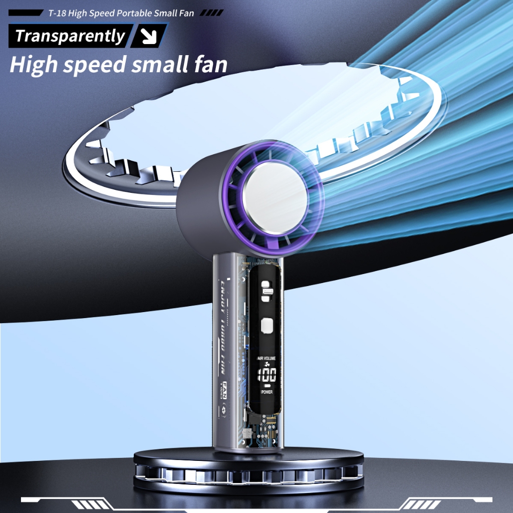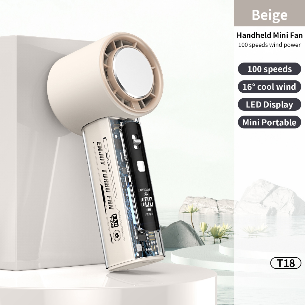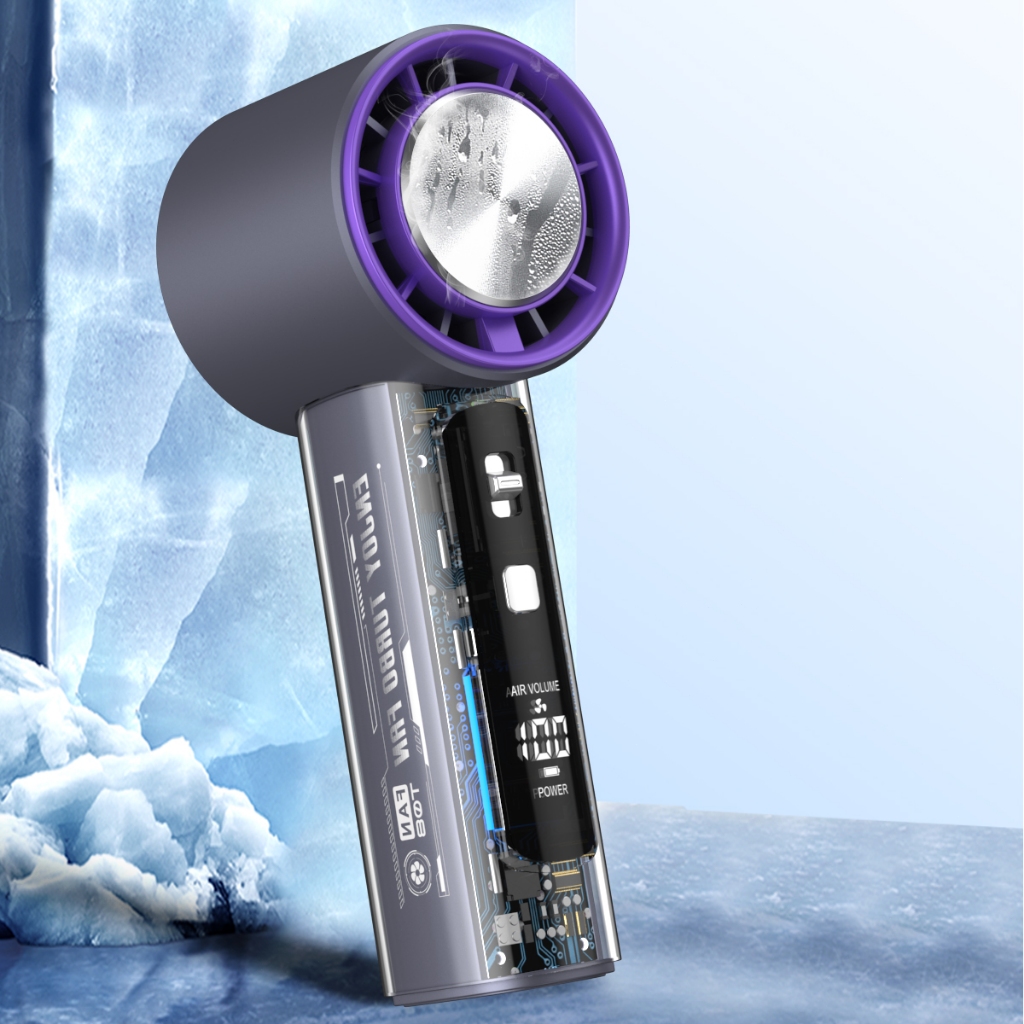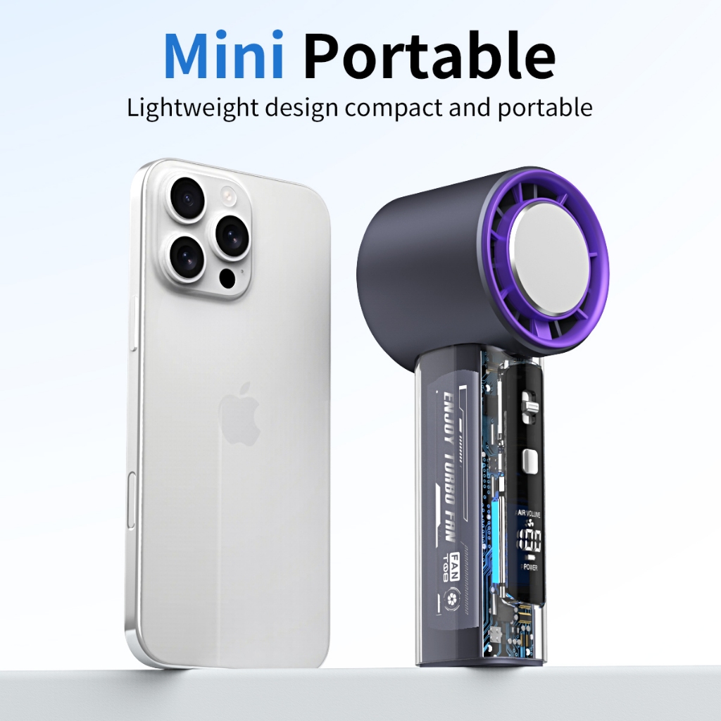 Kipas Angin Portable Mini Desain Bilah Turbin Angin Super Kuat 199 Tingkat Kecepatan Angin Tampilan LED Baterai Berkapasitas Besar Masa Pakai Baterai Lama Motor Brushless Senyap