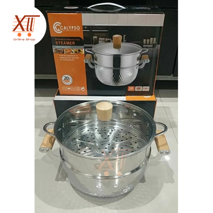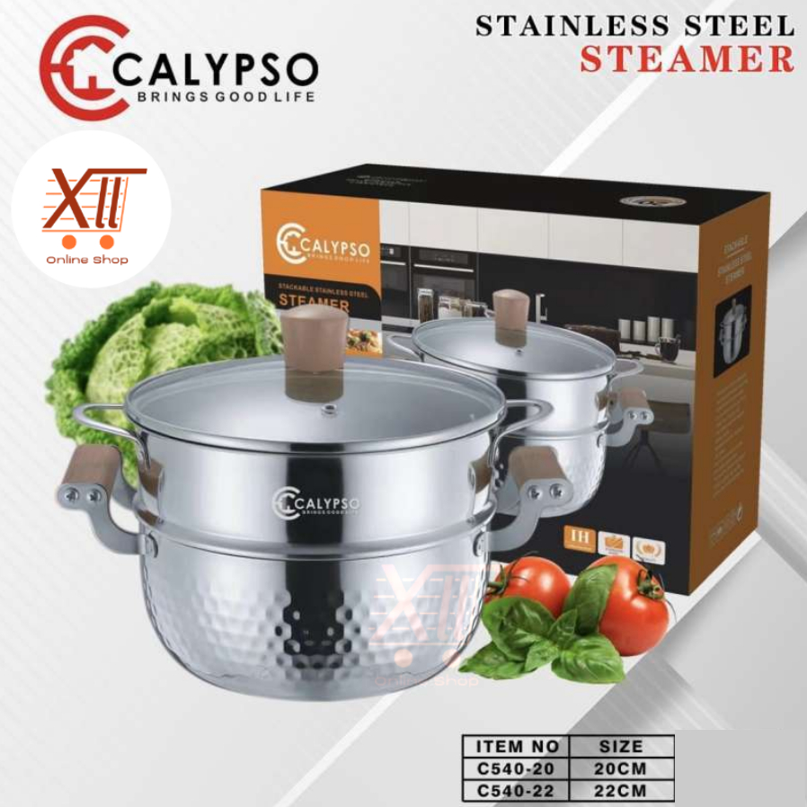 CALYPSO C540~20 KOREAN STEAMER POT 20 Cm Panci Kukus Tutup Kaca 2 Susun Stainless Steel