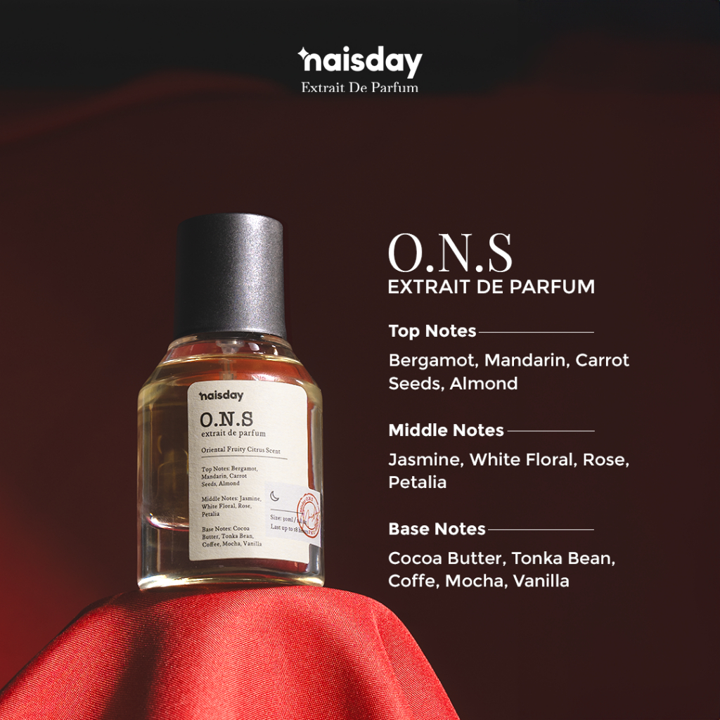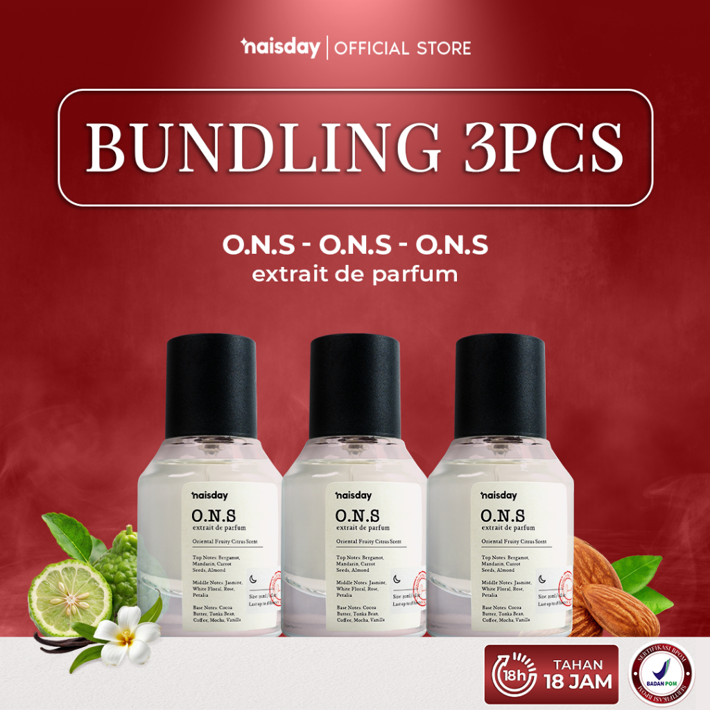[BUNDLE 3pcs] NAISDAY Extrait de Perfume O.N.S – Parfum Laki-laki Wanita Unisex Extra Long Lasting Minyak Wangi Citrus Almond Tahan Lama Segar Fresh 30ml
