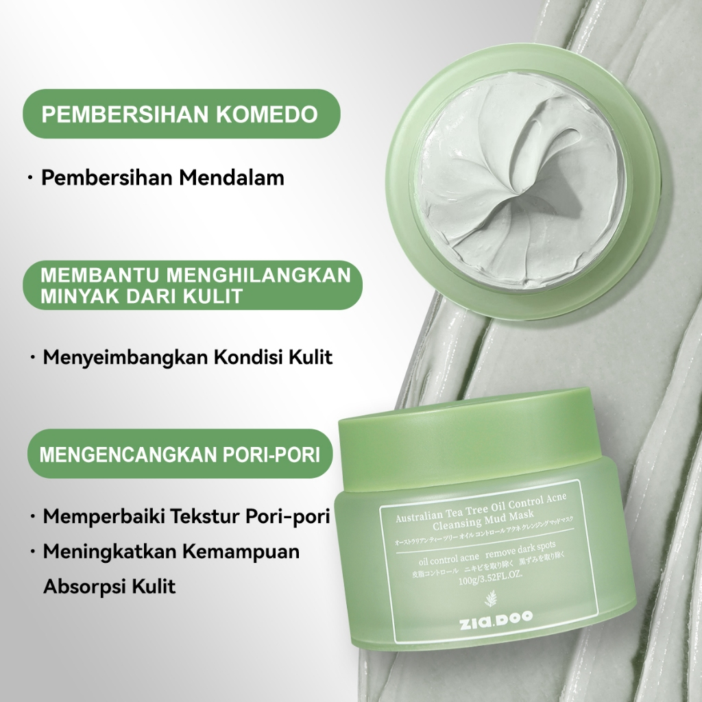 ZIA.DOO Australian Tea Tree Oil Acne Control 3PC Set –Whitening Sunscreen Spf50 Pa++++ 30ml+Low pH Facial Wash Busa Wajah 100ML+Australian Tea Tree Oil Clay Mask 30g