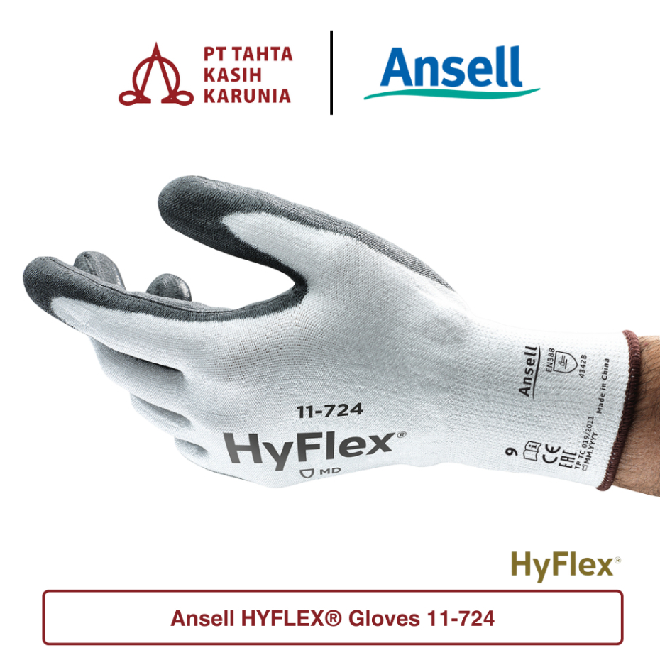 Ansell HYFLEX® Gloves 11-724 Lightweight & Abrasion Resistant Cut Level 3 (Sarung Tangan Safety Industri Tahan Sayatan Benda Tajam & Anti Abrasi)