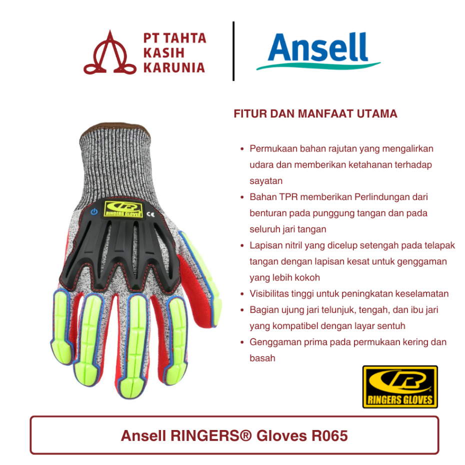 Ansell RINGERS® Gloves R065 Impact Cut Resistant (Sarung Tangan Safety Industri Tahan Sayatan Benda Tajam & Touchscreen Compatible)