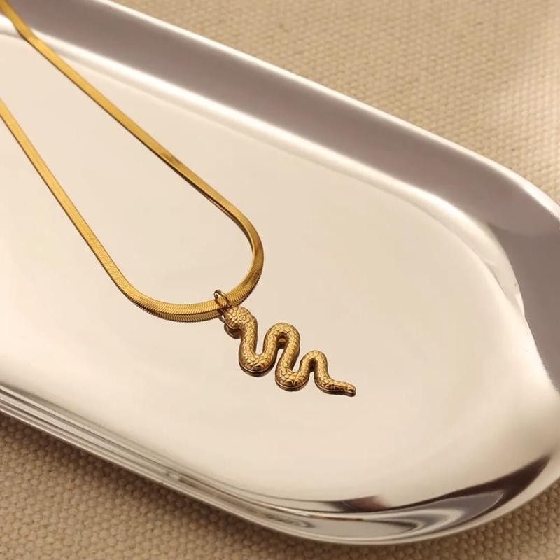 Kalung Titanium Anti Karat Model Rolo Liontin Ular Terlaris Elegan