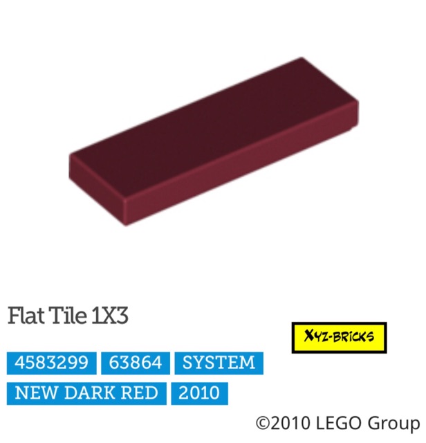 LEGO PARTS 4583299 - Flat Tile 1x3 New Dark Red