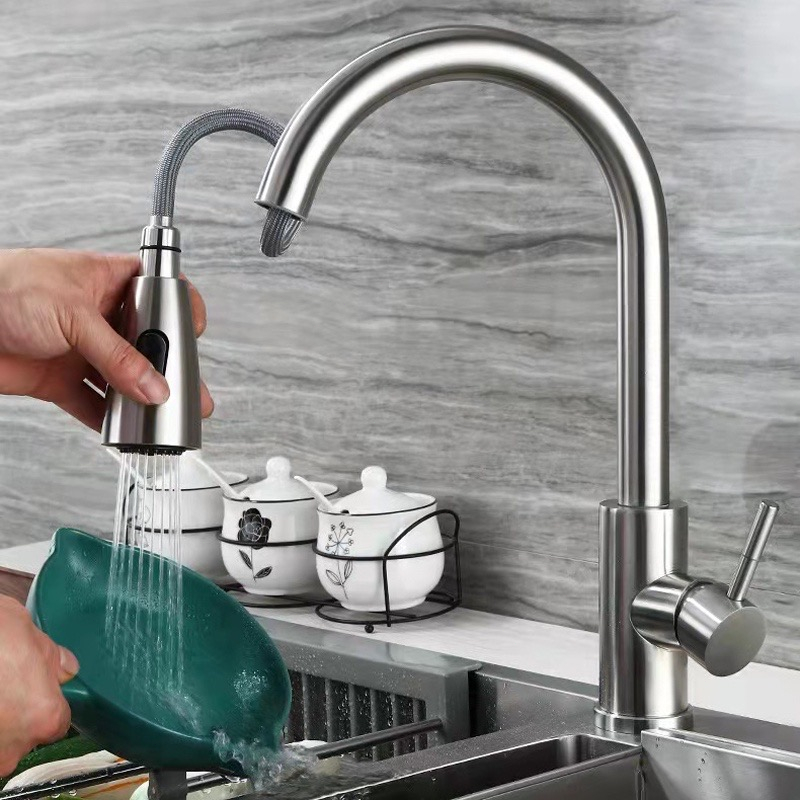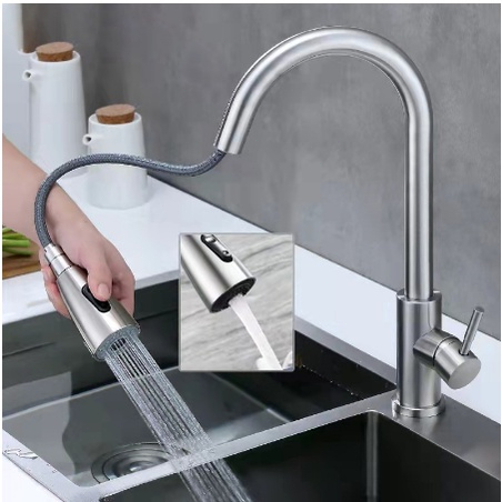 SUS304 Kran Sink Tarik Keran Cuci Piring Fleksibel Stainless Faucet Sprayer kran Cuci Piring Kitchen sink kran air cuci piring