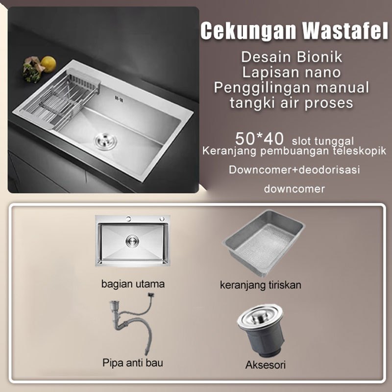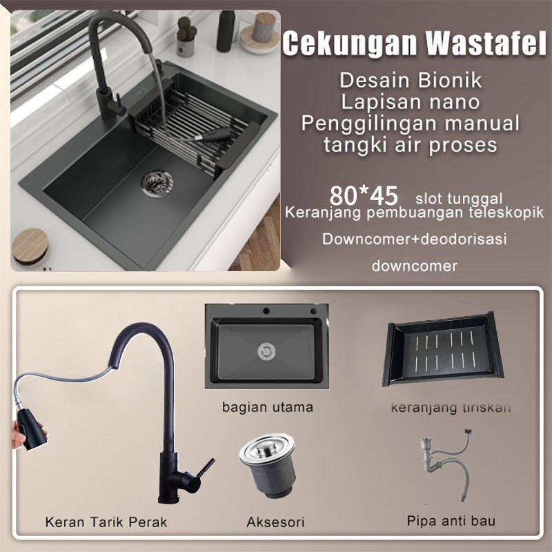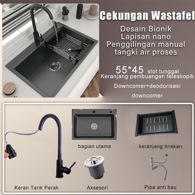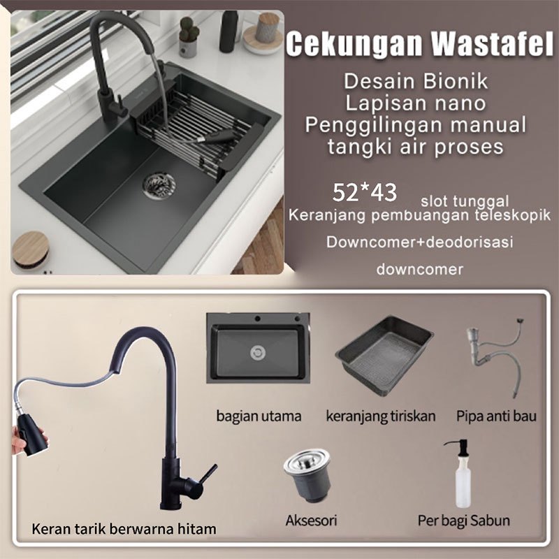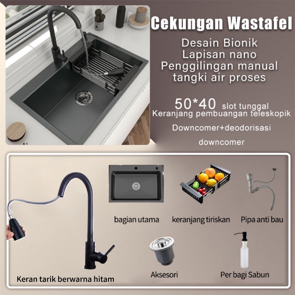 Paket Kitchen 5040 Sink BLACK /Bak Cuci Piring Stainless HITAM Ketebalan 3.0mm Kitchen sink Modern