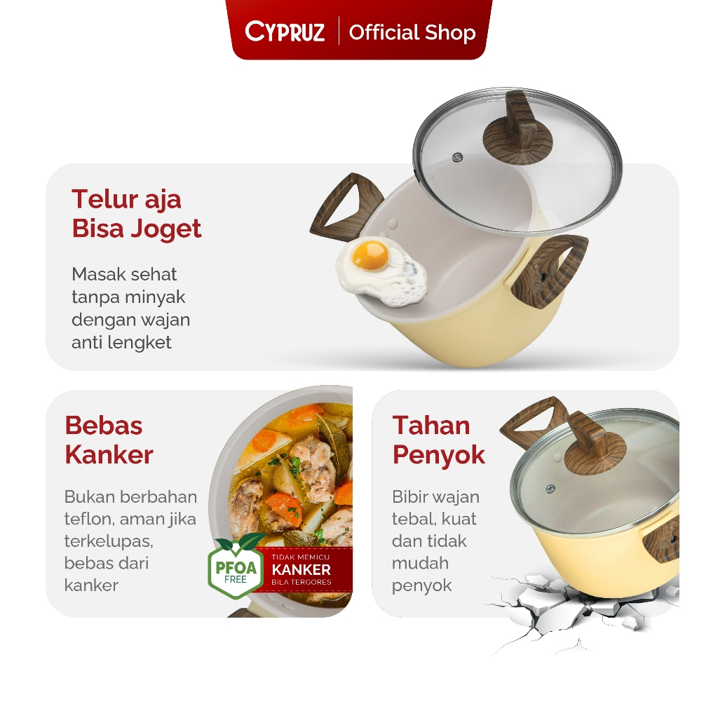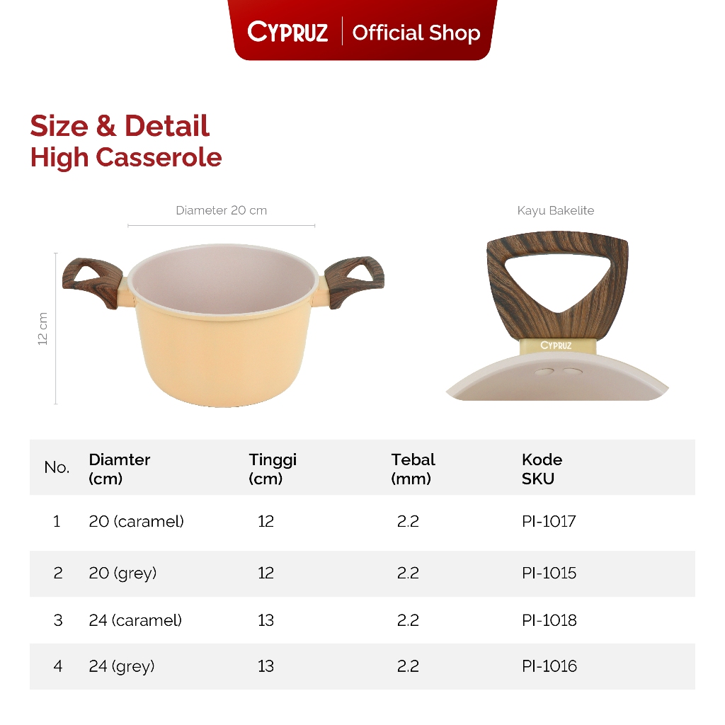 Cypruz Panci Anti Lengket Dengan Tutup Casserole High Hercules Series