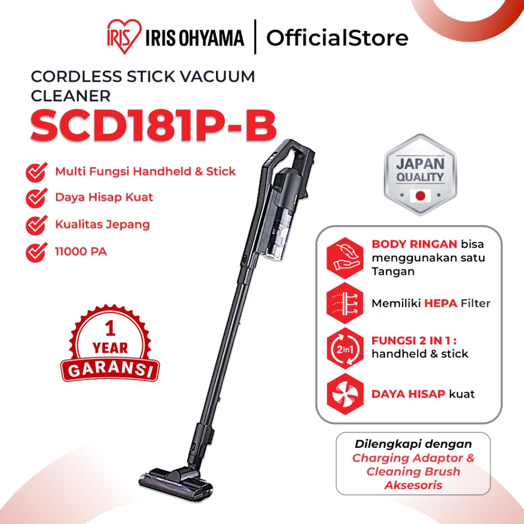 Iris Ohyama SCD-181P-B Cordless Stick Vacuum Cleaner Multifunction 2-in-1 Penyedot Debu Cerdas