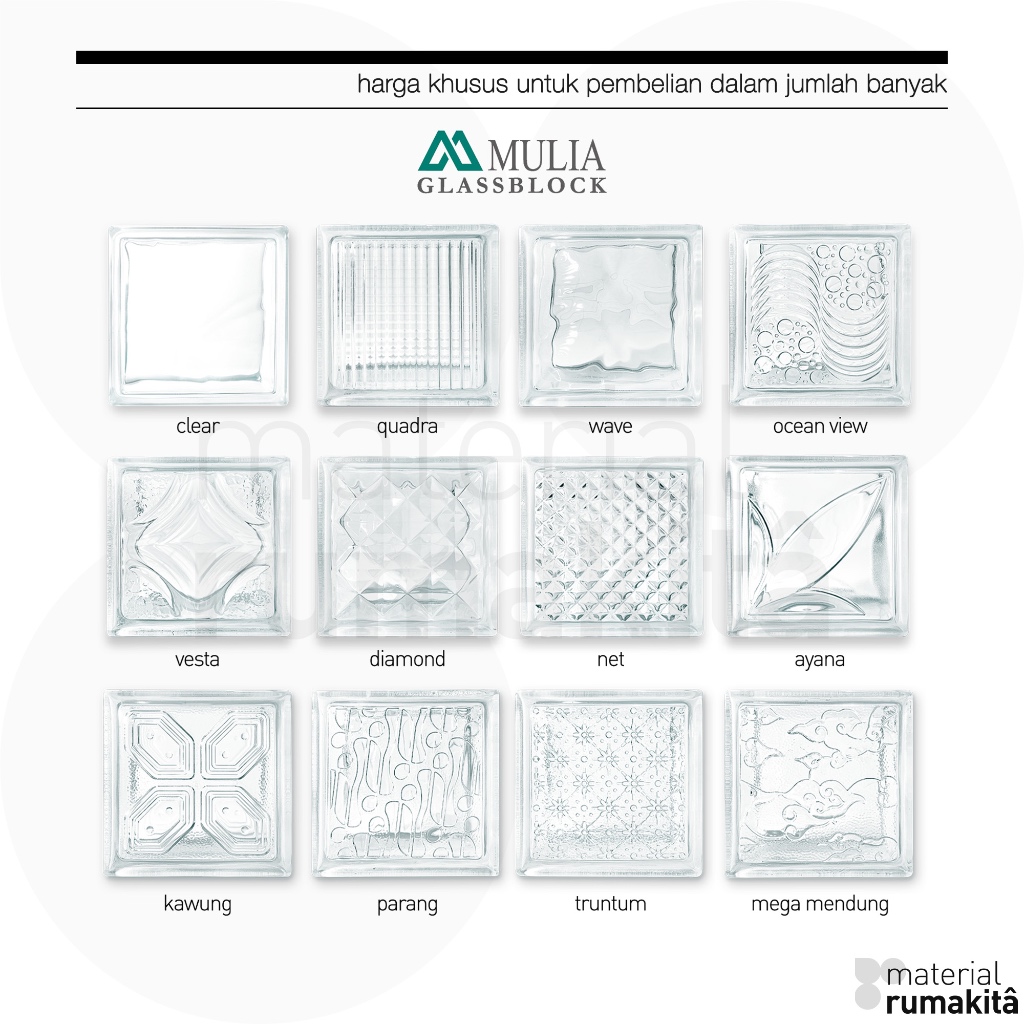 GLASS BLOCK MULIA MOTIF LENGKAP / GLASSBLOCK DINDING SATUAN