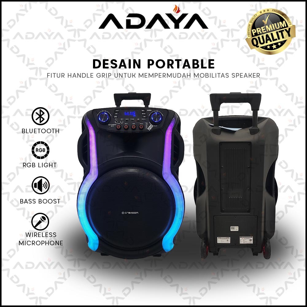 SPEAKER AKTIF PORTABLE 15 RADIO TWS RGB CRIMSON CR-15 BEATMAX 2 Mic Wireless