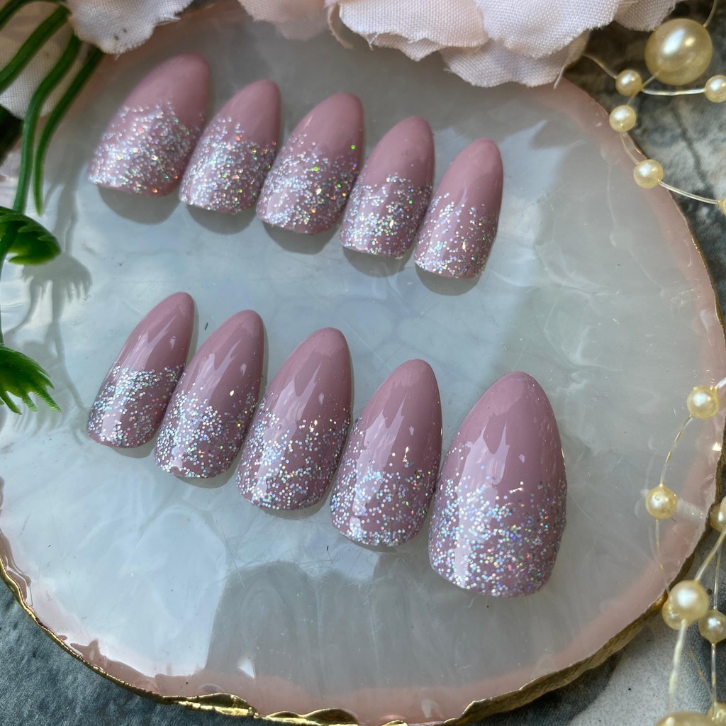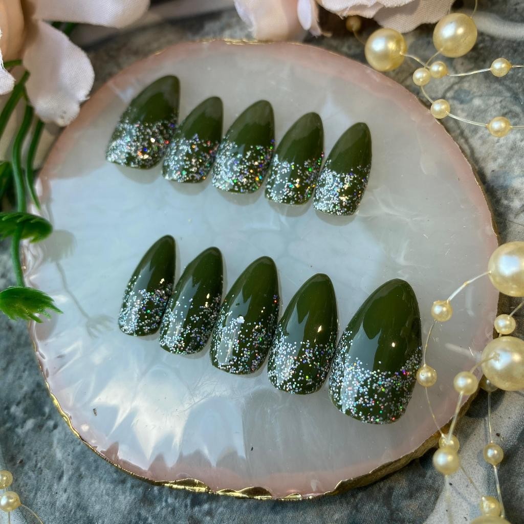 Nail art kuku palsu hitam glitter| Fake nails premium| Nail press on black Vol A5
