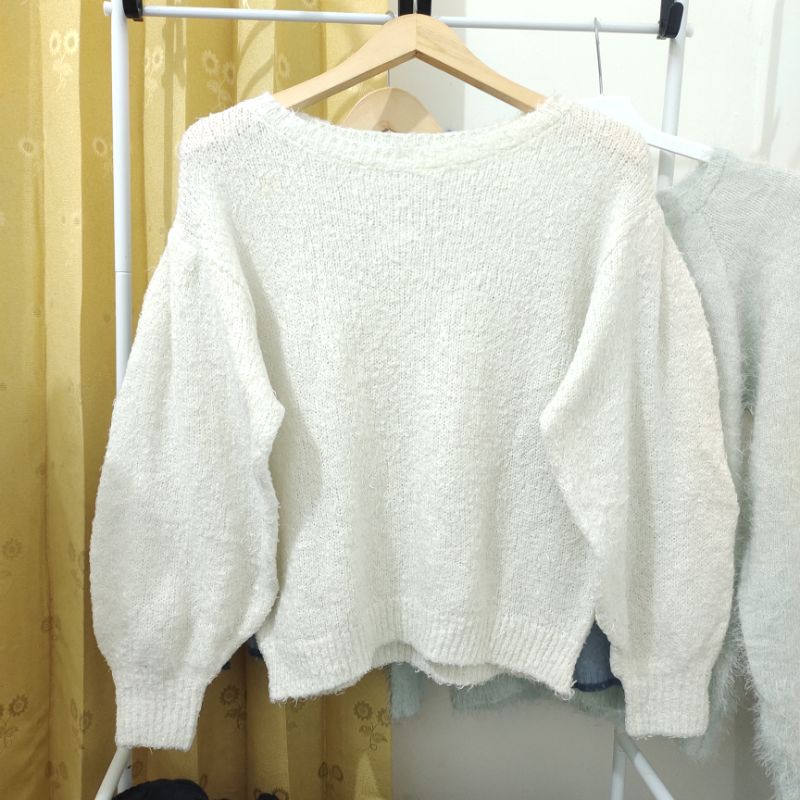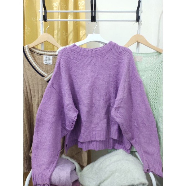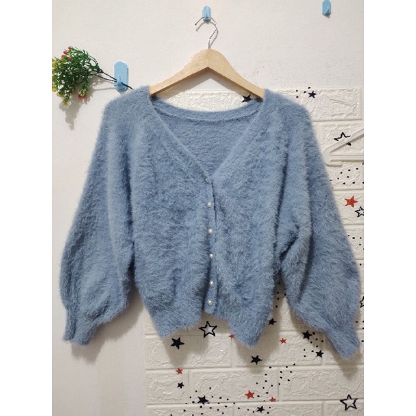 DISKON 50RB,CEK VOCER CARDIGAN BULU FUZZY PREMIUM CARDI CROP RAJUT KNIT FUZY BORDIR MURAH OUTER BALON KEPANG CABLE MINT HANGER PANJANG MUTIARA MOTE MANIK GLITTER HALUS LEMBUT CREAM PASTEL BABY PINK BLUE- MANUSIA LILAC