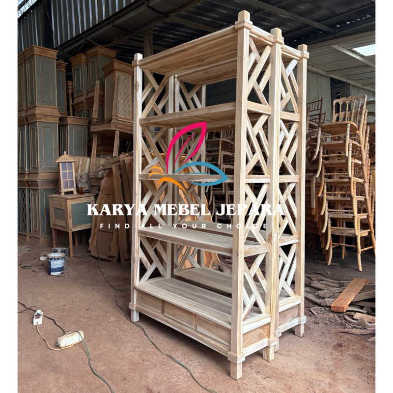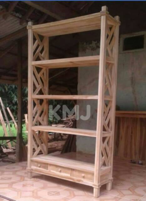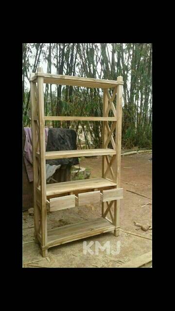 [RAK BUKU ] 3 LACI JATI cocok untuk BONEKA PIALA MURAH KAYU JATI MENTAH