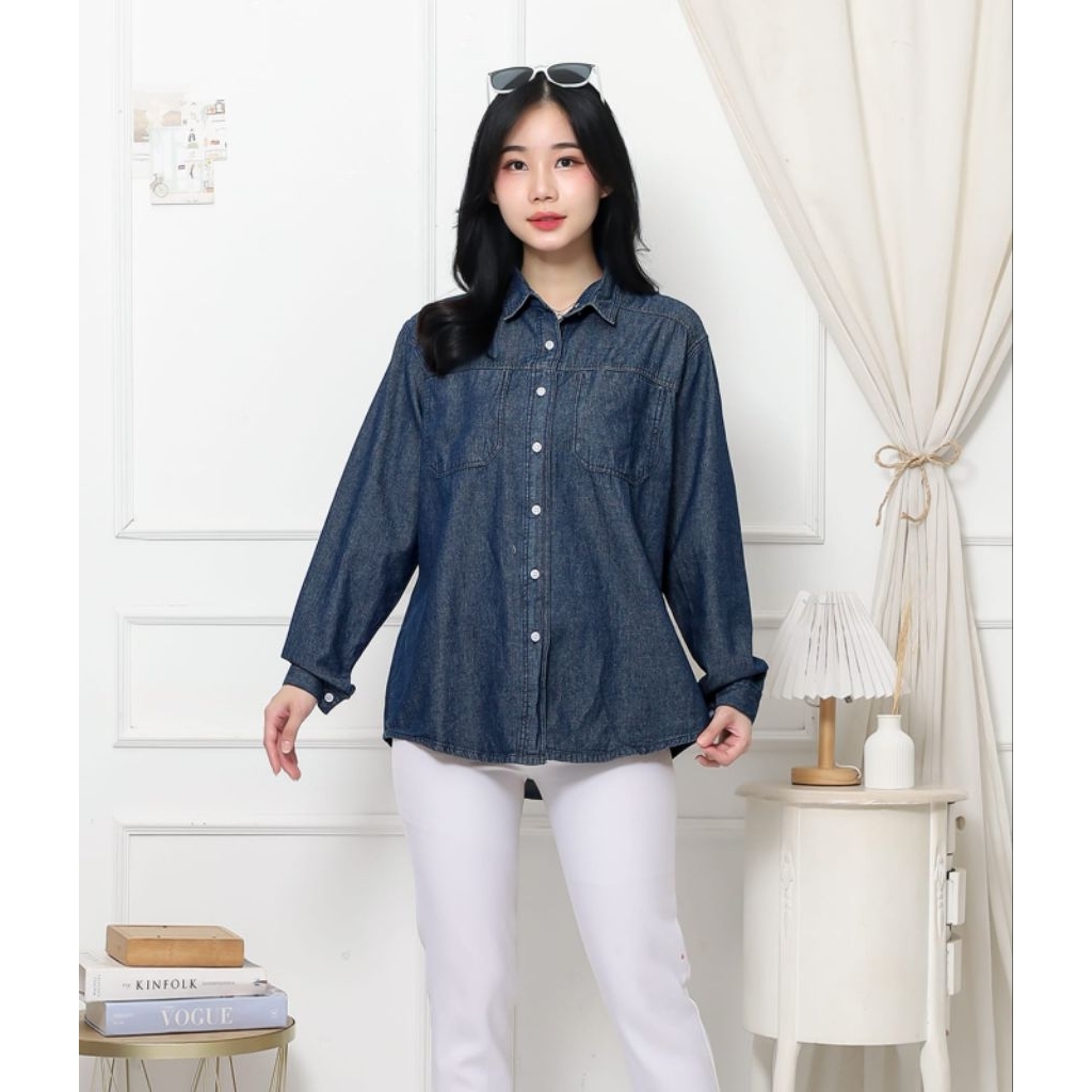 Blouse Jeans Baju Jeans Lengan Panjang Blouse Denim Hitam Blouse Denim Biru Lengan Panjang Kemeja Denim Wanita