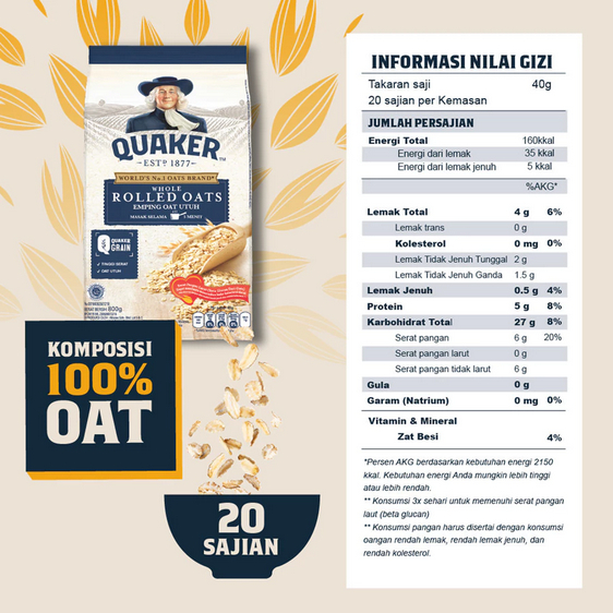QUAKER ROLLED OAT OATMEAL TINGGI SERAT & PROTEIN POUCH REFILL