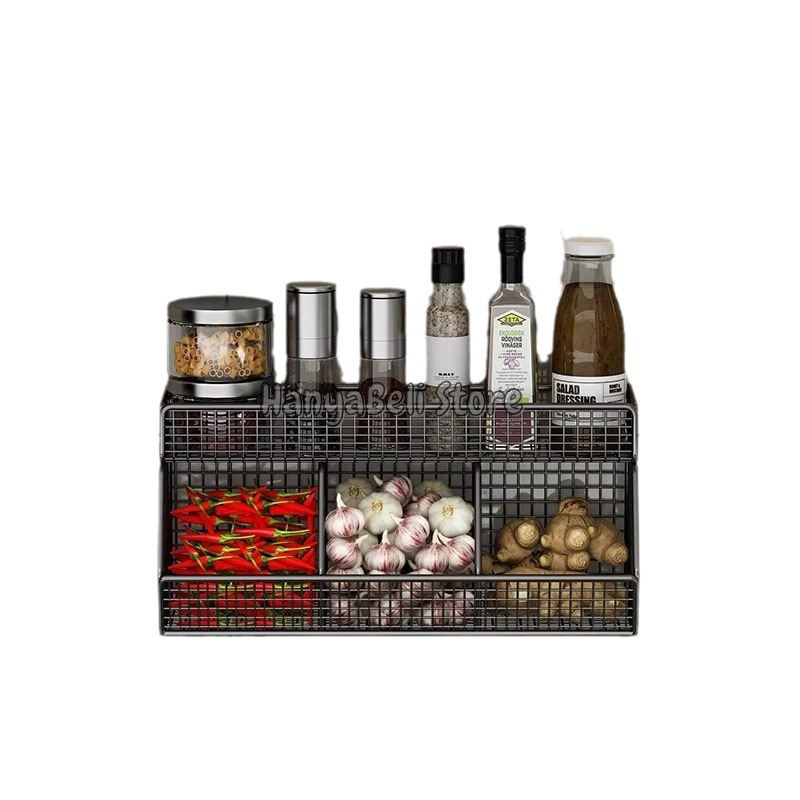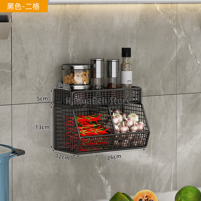 HBS Wadah Tempat Penyimpanan Bawang Putih Jahe Rak Dapur Gantung Tempel Dinding Rak Keranjang Dapur Besi Rak Penyimpanan Bumbu Dapur