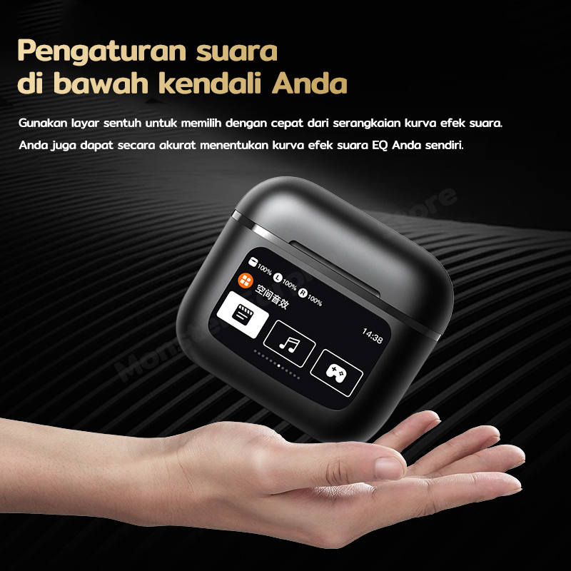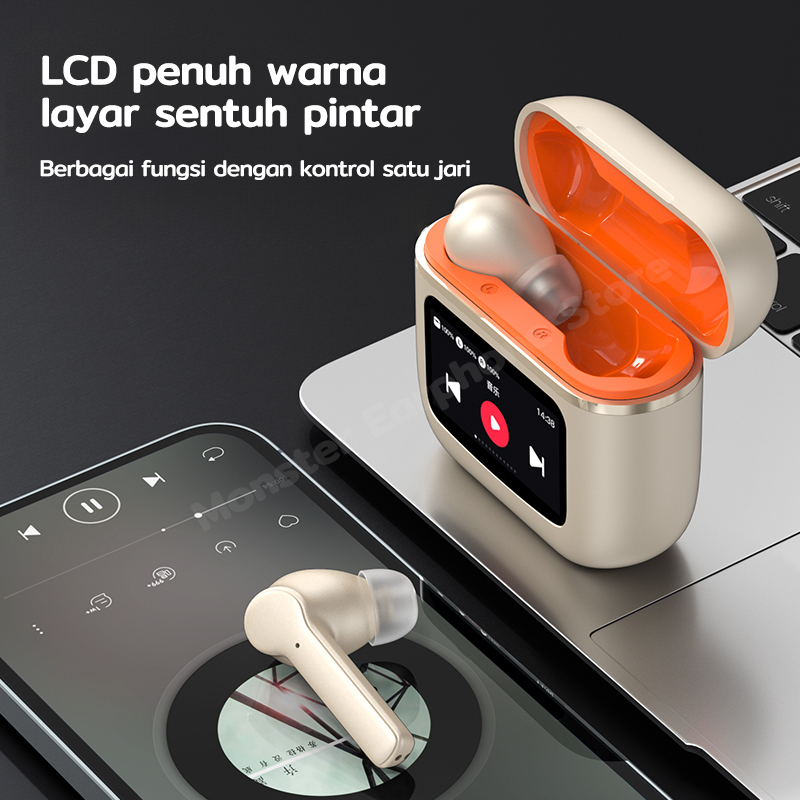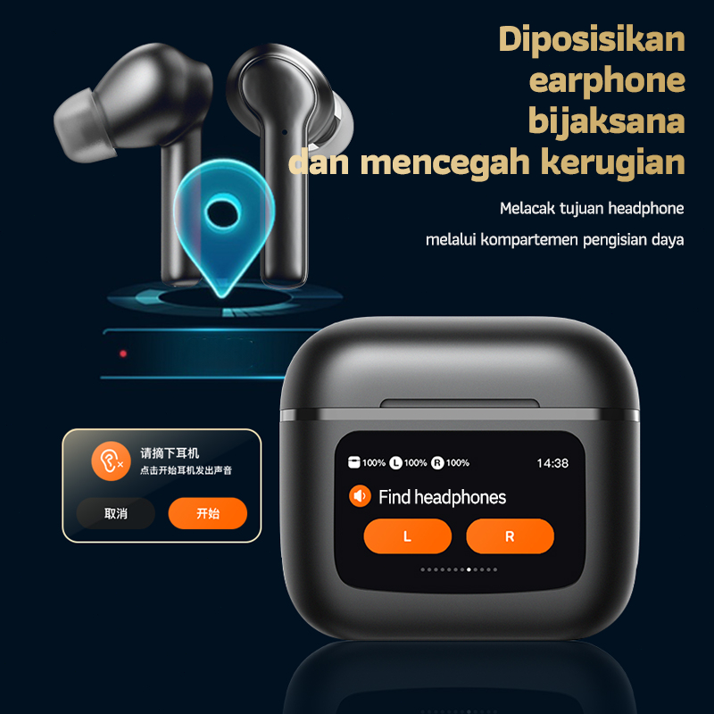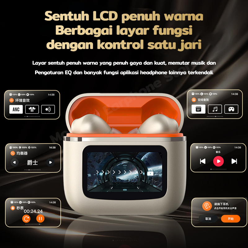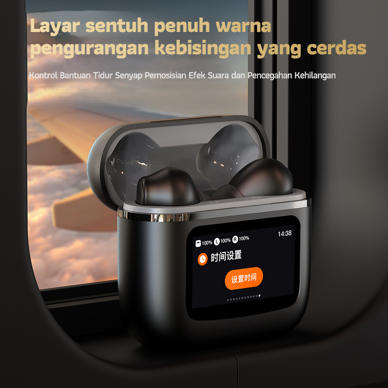 T68 Pro True Wireless Bluetooth Earphone Pengurangan Kebisingan ANC Layar Sentuh Berwarna LCD HiFi Stereo Olahraga/Permainan/Musik Wireless Headset