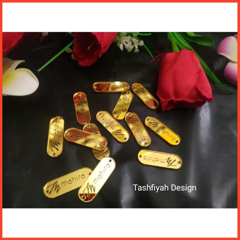 Label Akrilik Baju Hijab Custom Bulat Hitam 100 pcs