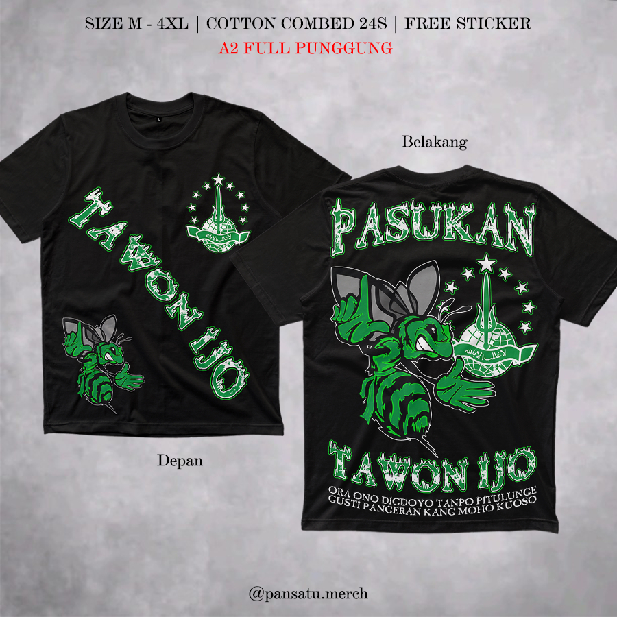 Kaos Tawon Ijo Pasukan Pagar Nusa 1986 Sablon Full Punggung A2 Cotton Combed 24s