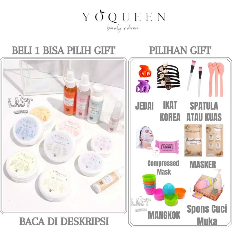 [BUY 1 FREE 4 GIFT/ 1 MASKER / BISA PILIH GIFT] MASKER ORGANIK BY YOQUEEN BEAUTY X YOQUEEN DERMA