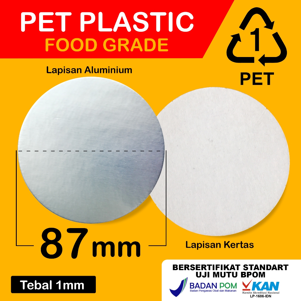 Segel Toples / Seal Aluminium Induksi PET 8,7 cm Food Grade