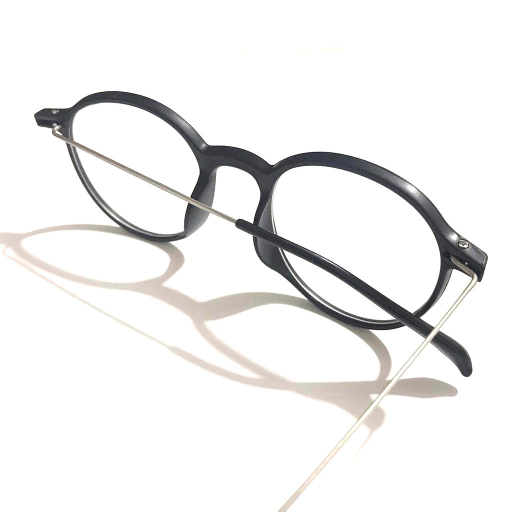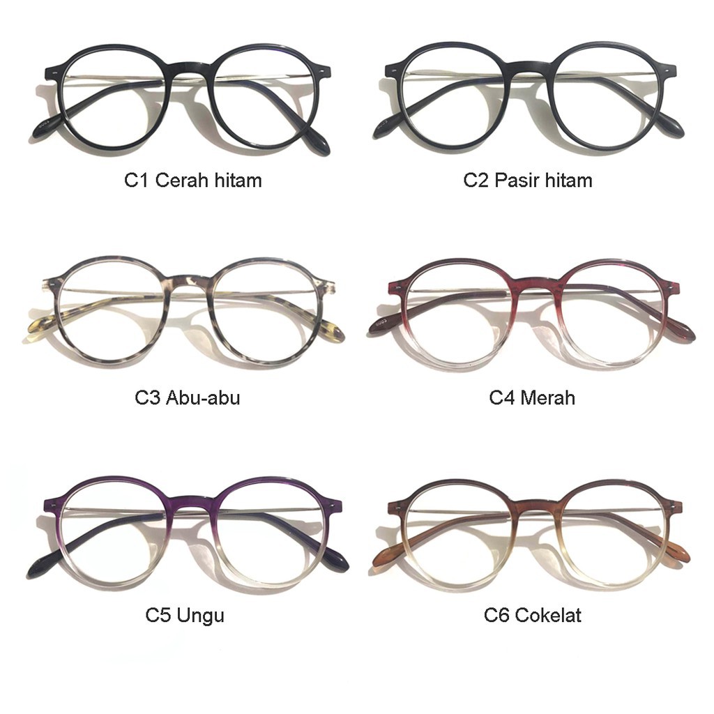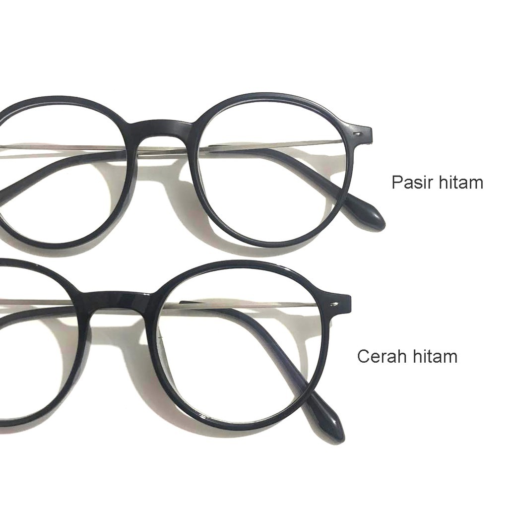 Kacamata Wanita Hitam Pria Frame kacamata Metal Round Sunglasses Anti Radiasi Lensa Transparan