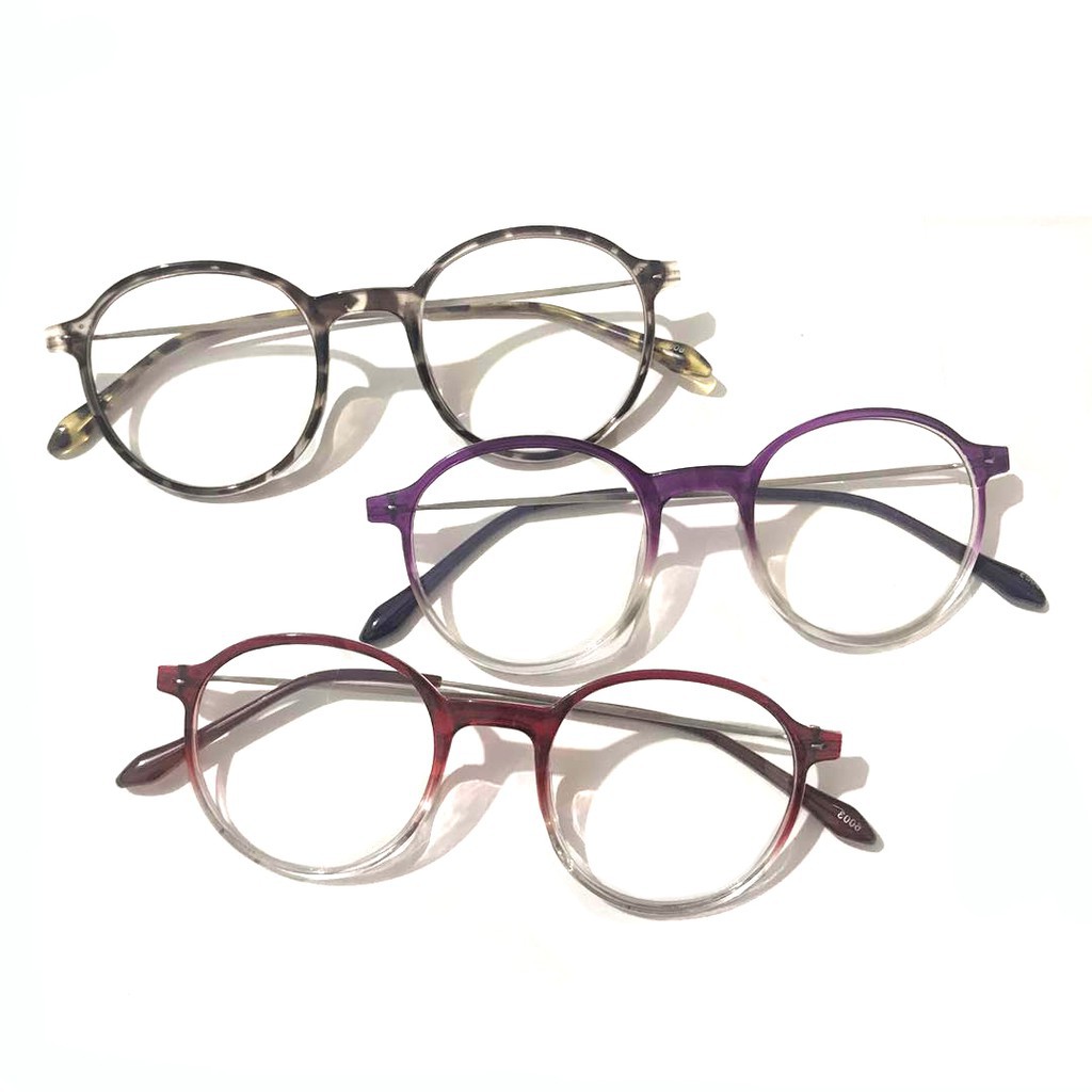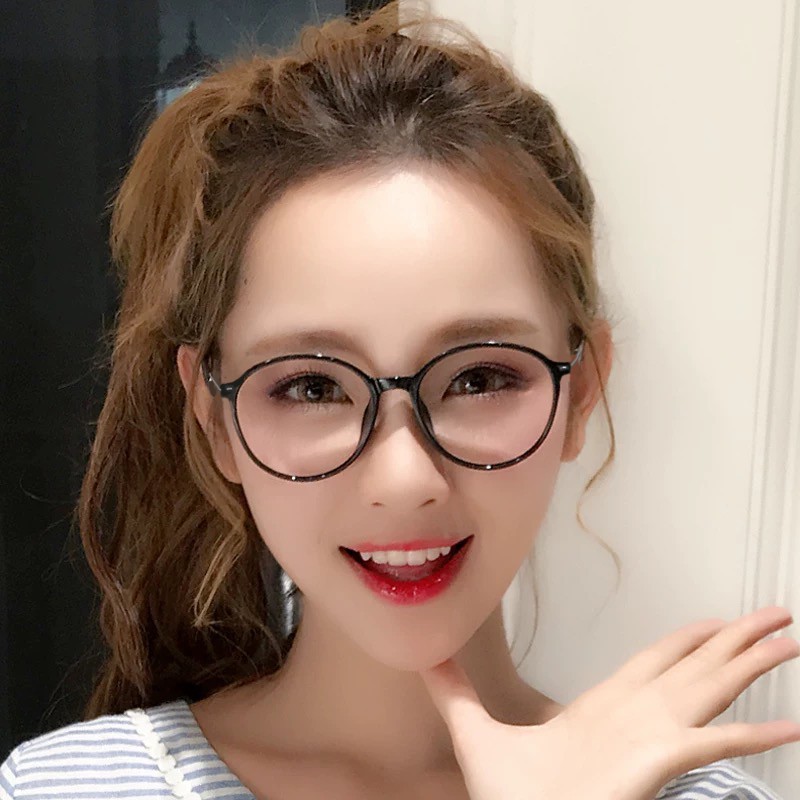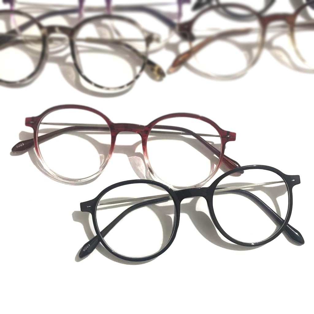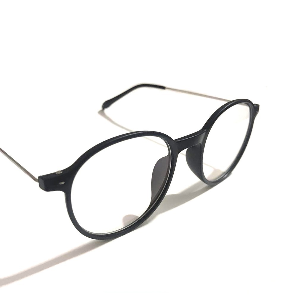 Kacamata Wanita Hitam Pria Frame kacamata Metal Round Sunglasses Anti Radiasi Lensa Transparan