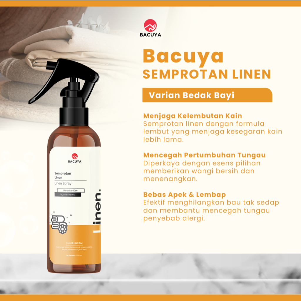Bacuya - Linen Spray Pencegah Tungau Pada Kasur Sprei Bantal Aroma Bedak Bayi Menenangkan Solusi Efektif Menjaga Kebersihan Tempat Tidur dari Bahaya Tungau Maupun Bakteri