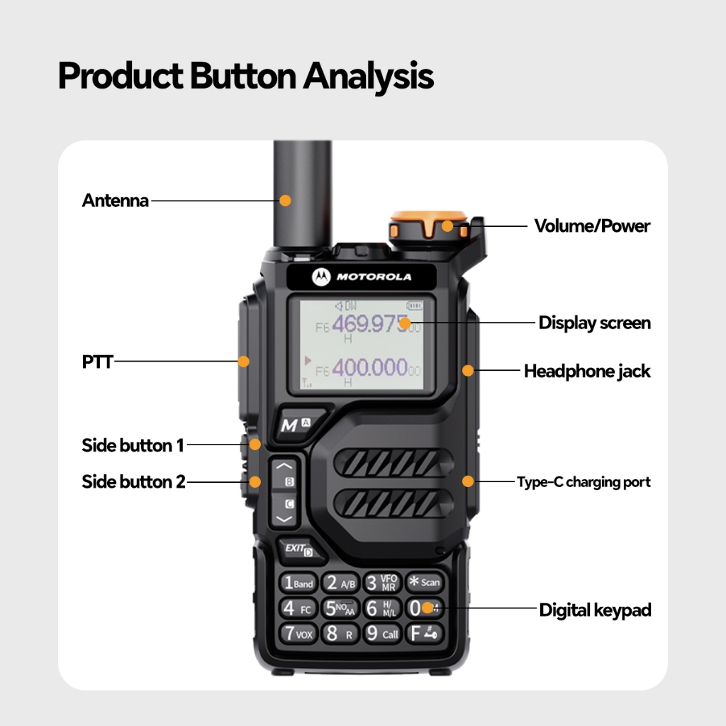 HT Motorola X8 Walkie Talkie Jarak Jauh 20KM Two Way Radio UHF/VHF Radio Dua Arah Di Luar Ruangan/Tahan Air K Headset Handy Talky / HT Jarak Jauh 20km