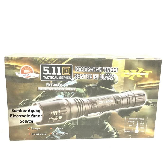Senter SWAT Baterai Dobel ZXT8668 Tahan Air Terang 880000W / 2500000 Lumen