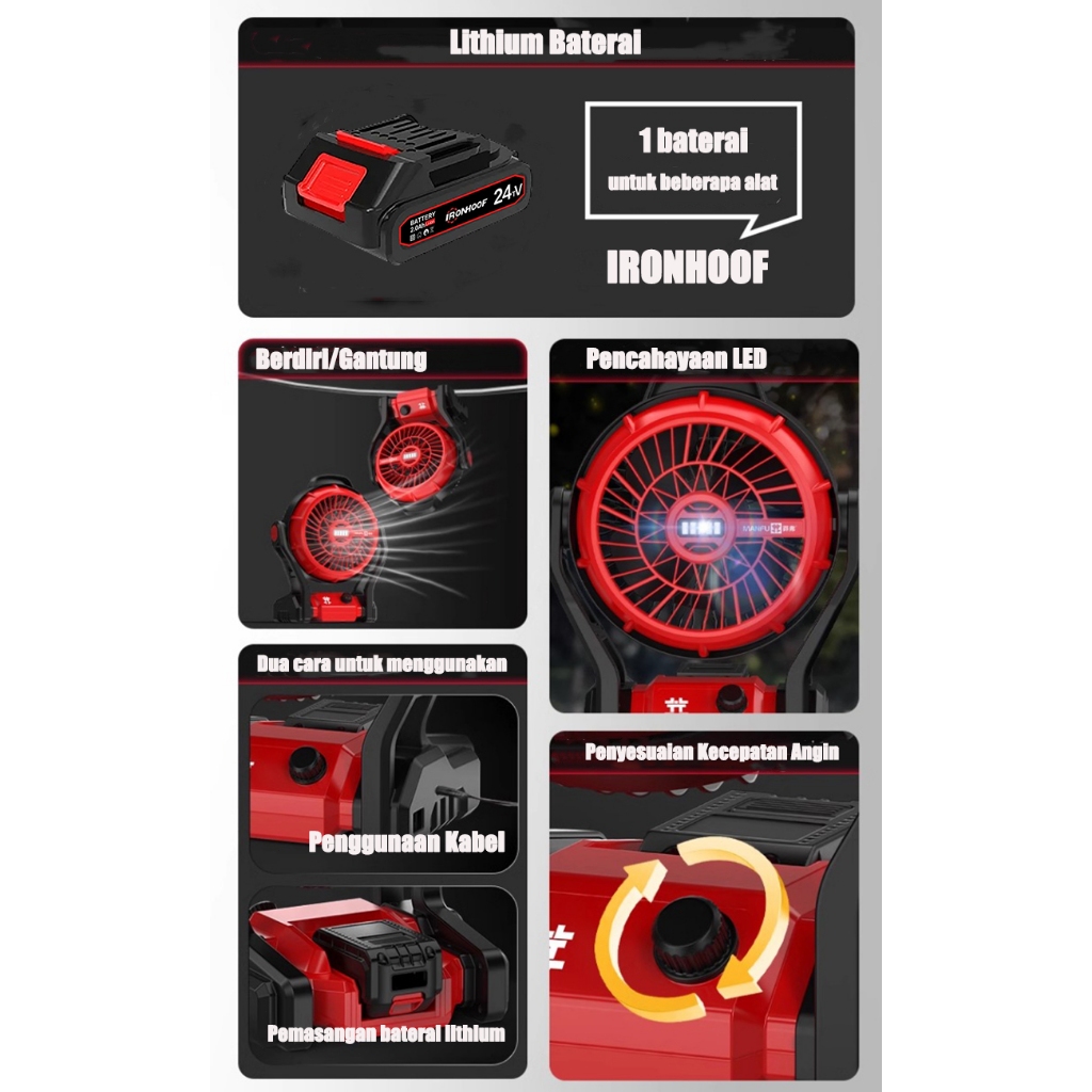 12 Inci Cordless Portable kipas angin 48V Lithium Baterai Angin Alat Berkemah di Luar Ruangan