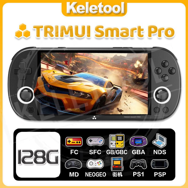 Trimui Smart Pro 128G Game Console Layar IPS 4,96" Sistem Linux Joystick Pencahayaan RGB Smartpro Pemutar Video Game Retro Usia 5+