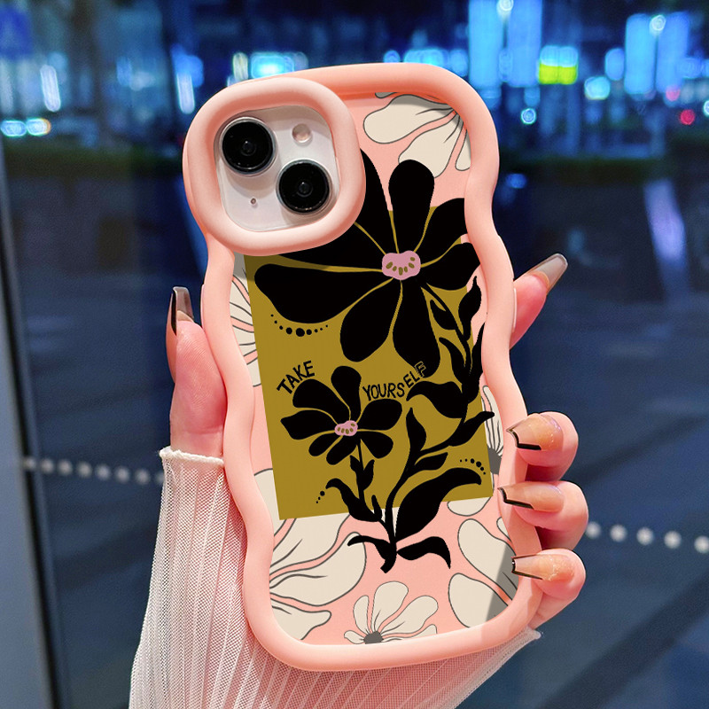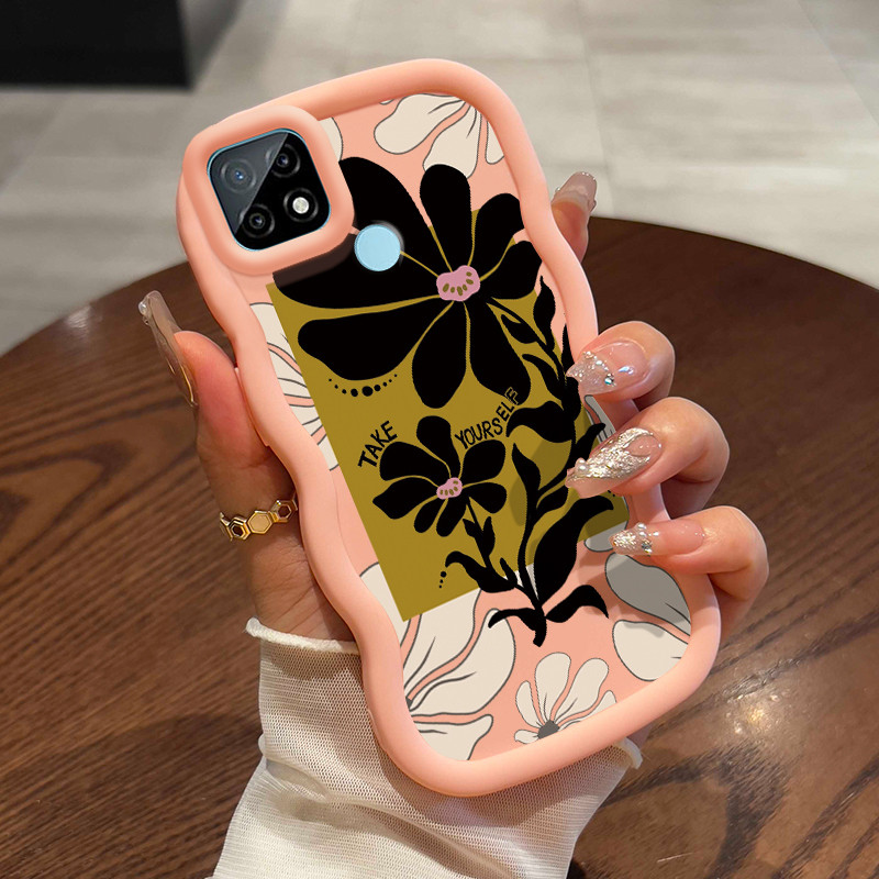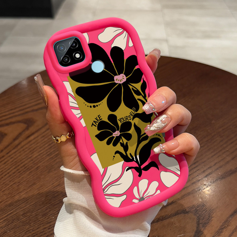 Casing HP Untuk Realme C21 Case Merah mawar bunga besar bergaya retro Wavy Edge Macaron Cesing Silikon Softcase Kasing MODEL GELOMBANG
