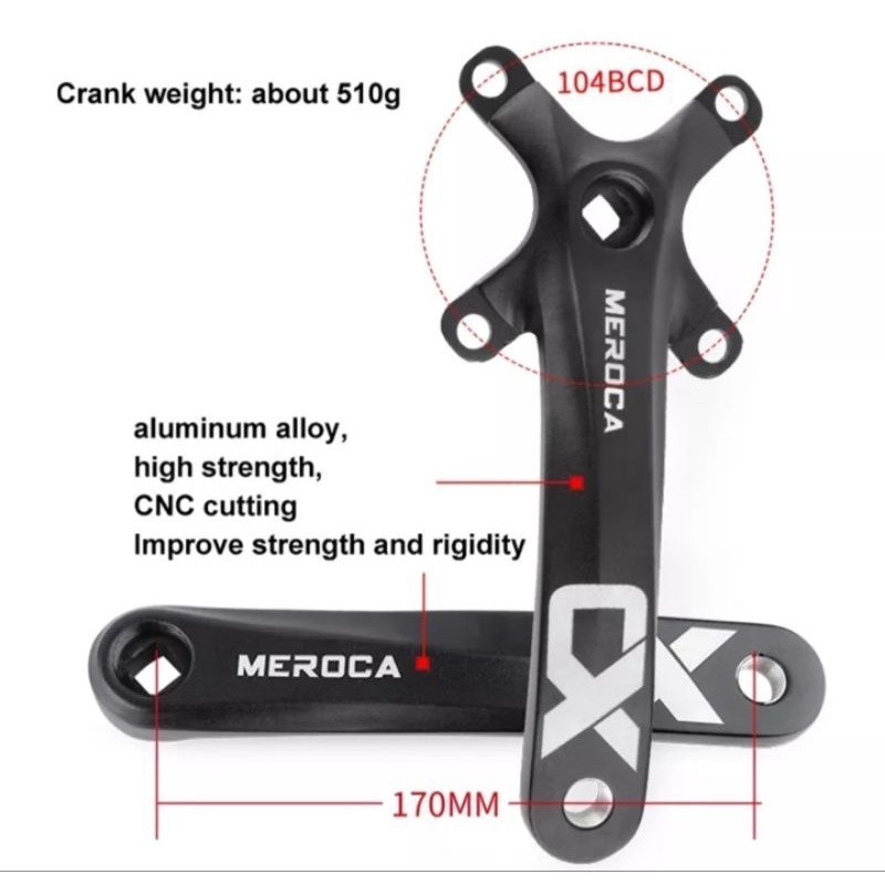 Meroca Crank Arm BB Kotak BCD 104 Arm Crank Sepeda