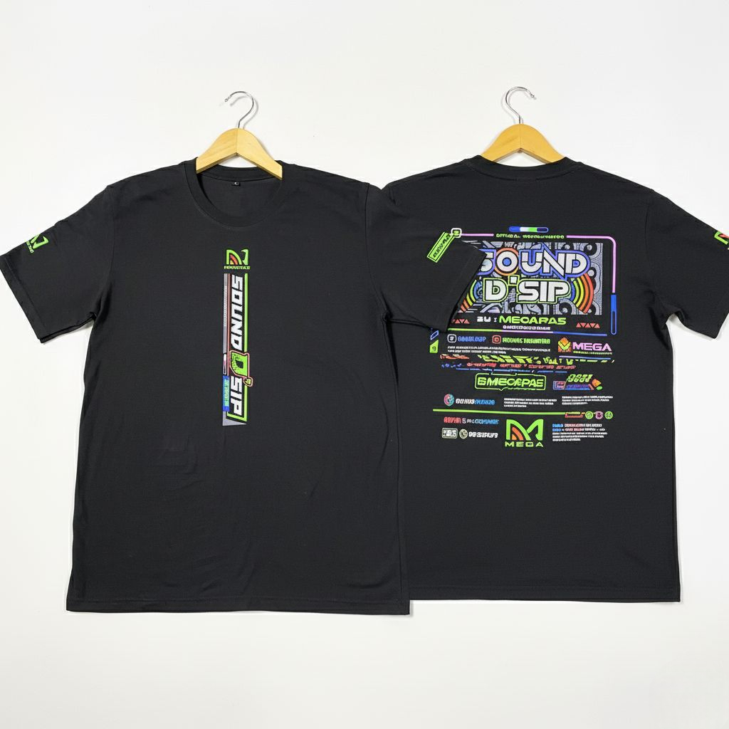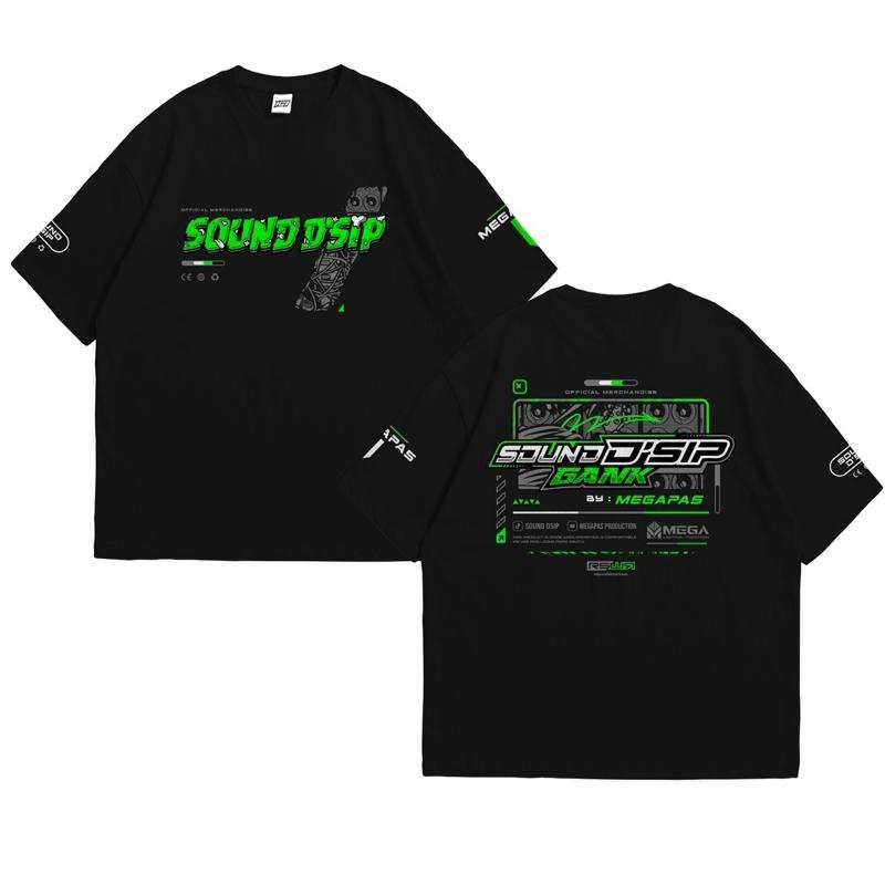 Kaos Sound D'sip Audio Tulungagung dengan Desain Hijau Neon dan Logo MEGA pada Lengan