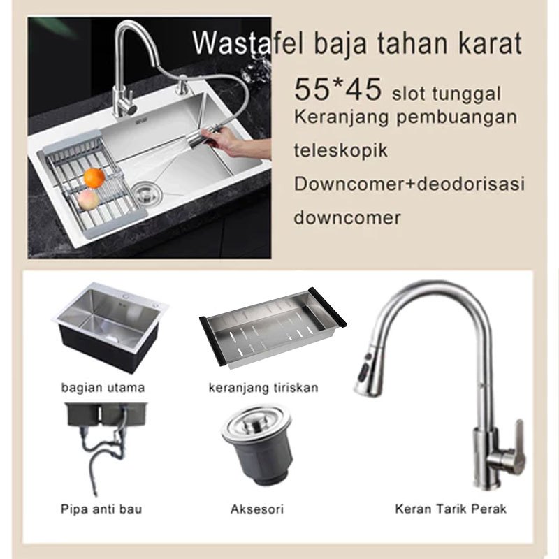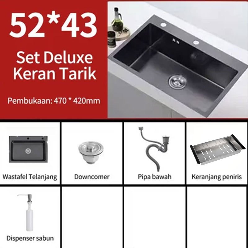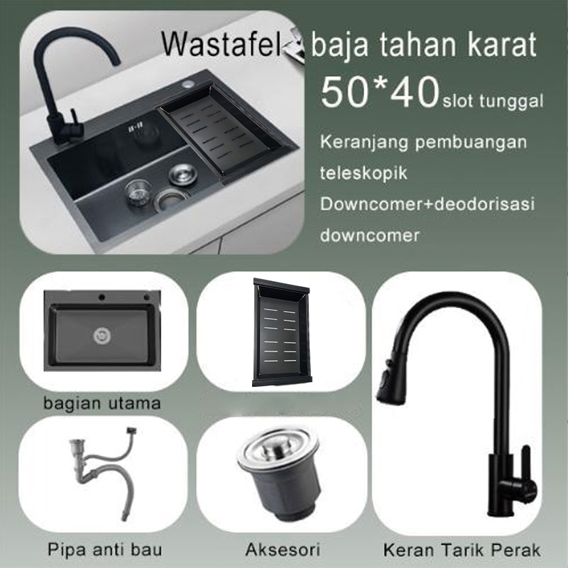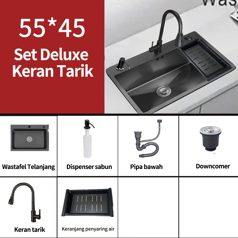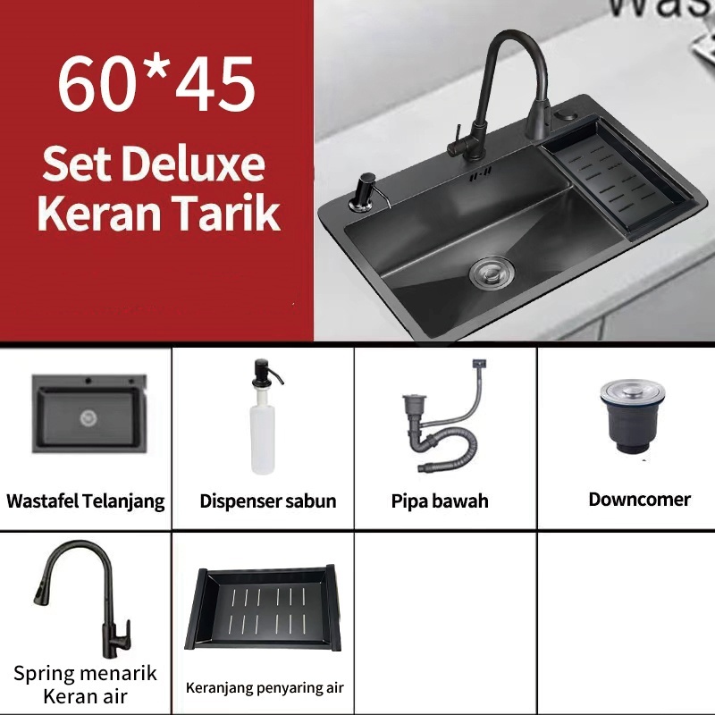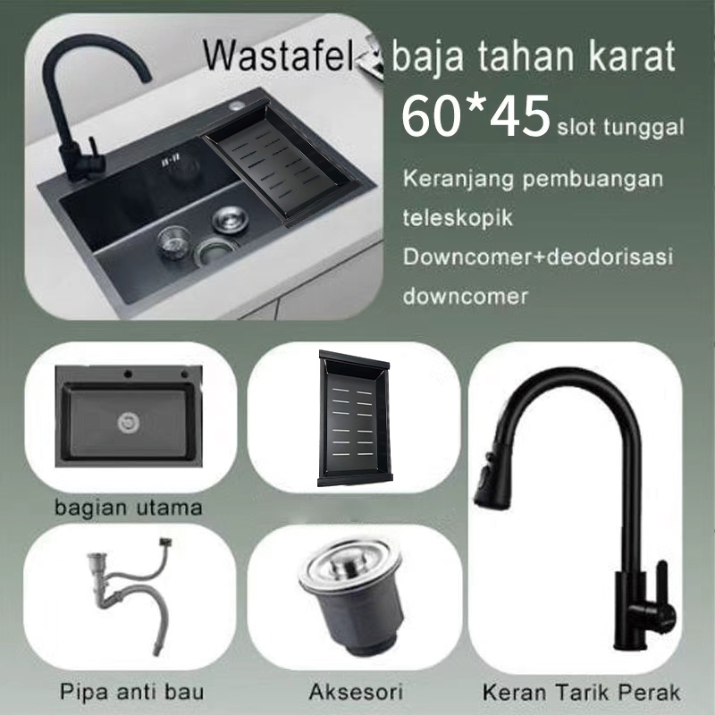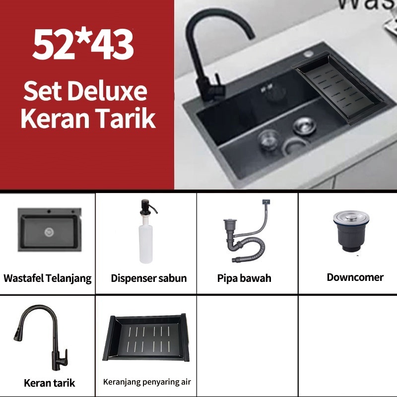 Paket Kitchen Sink Hitam/Perak Wastafel Cuci Piring Stainless/sink cuci piring Dengan Keran Tarik