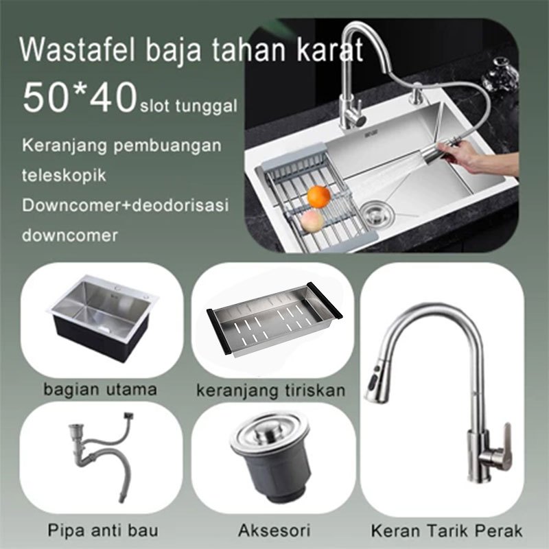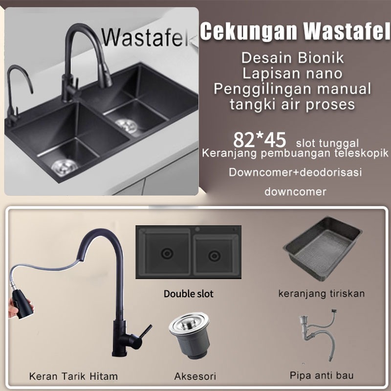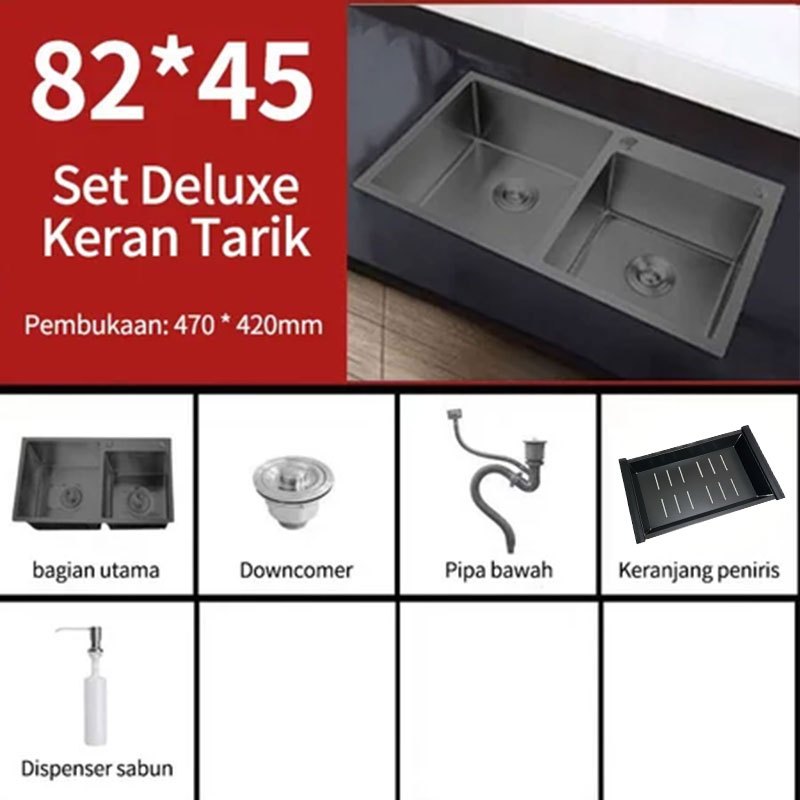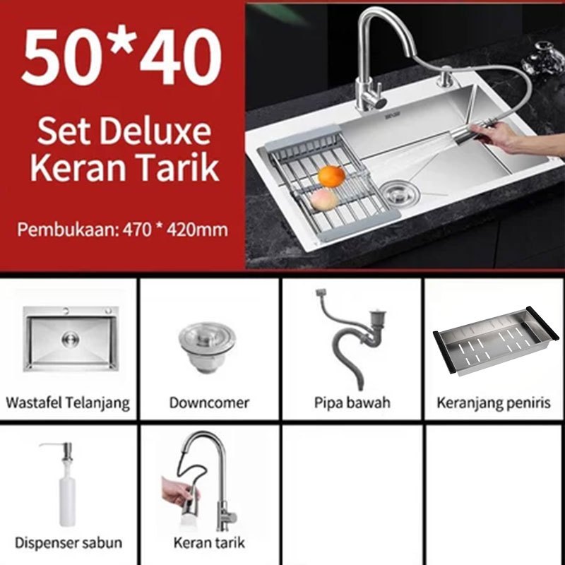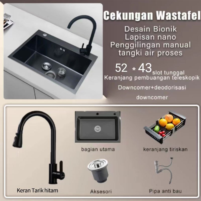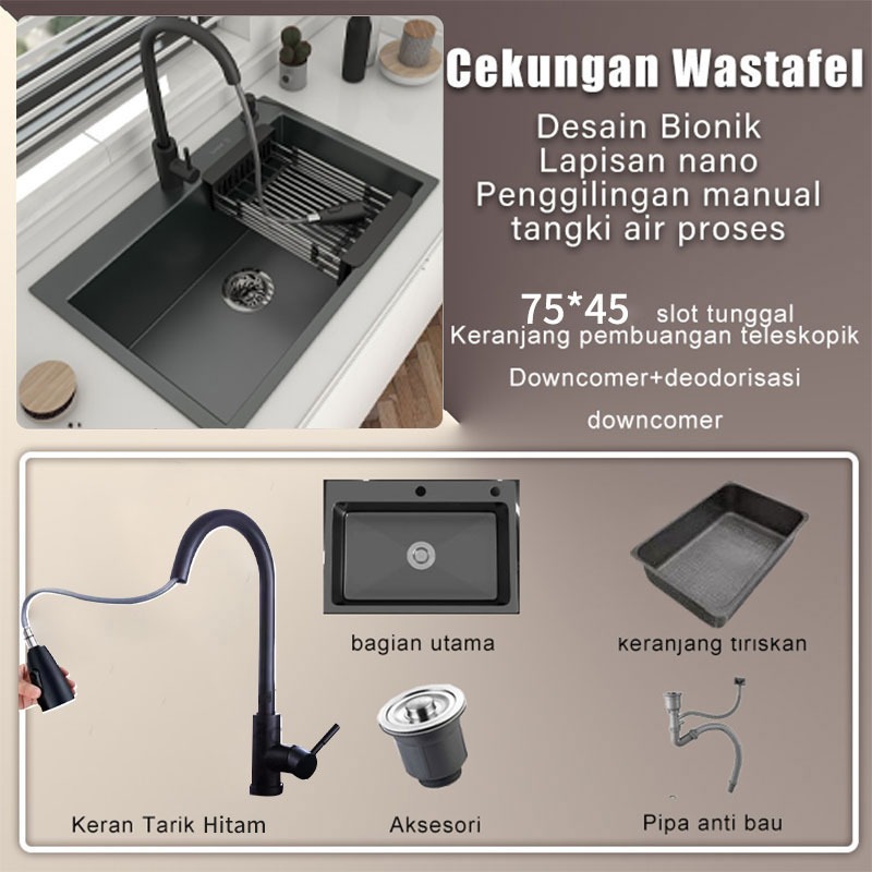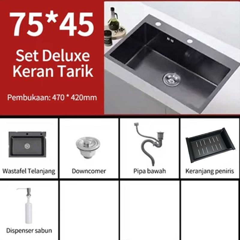 Paket Kitchen Sink Hitam/Perak Wastafel Cuci Piring Stainless/sink cuci piring Dengan Keran Tarik