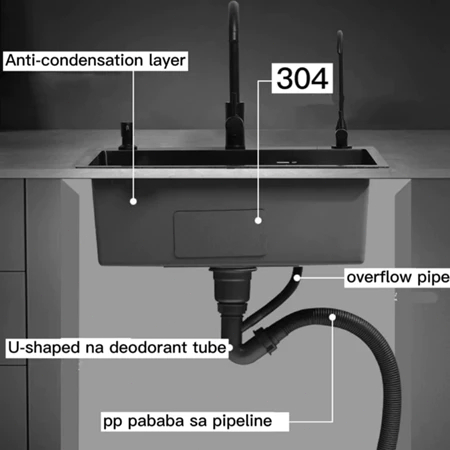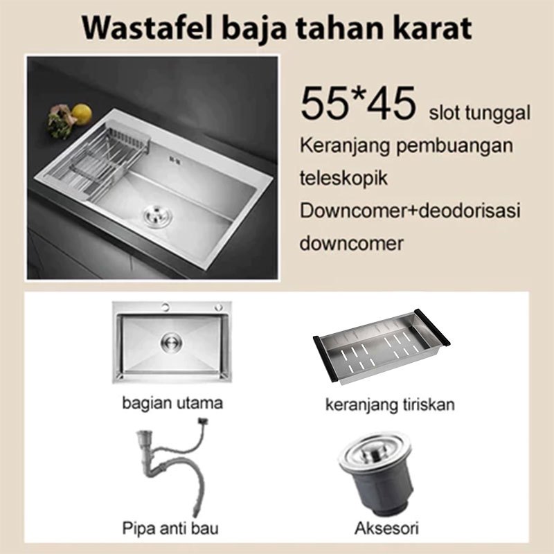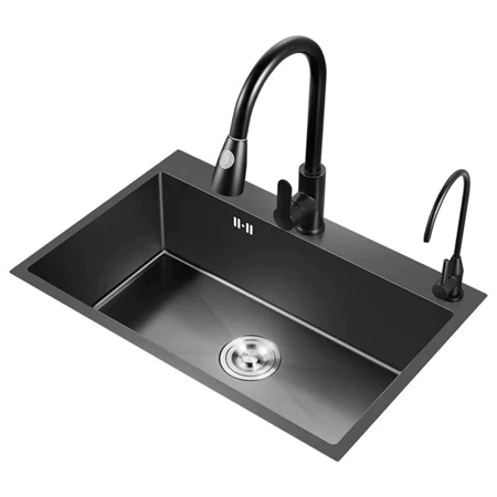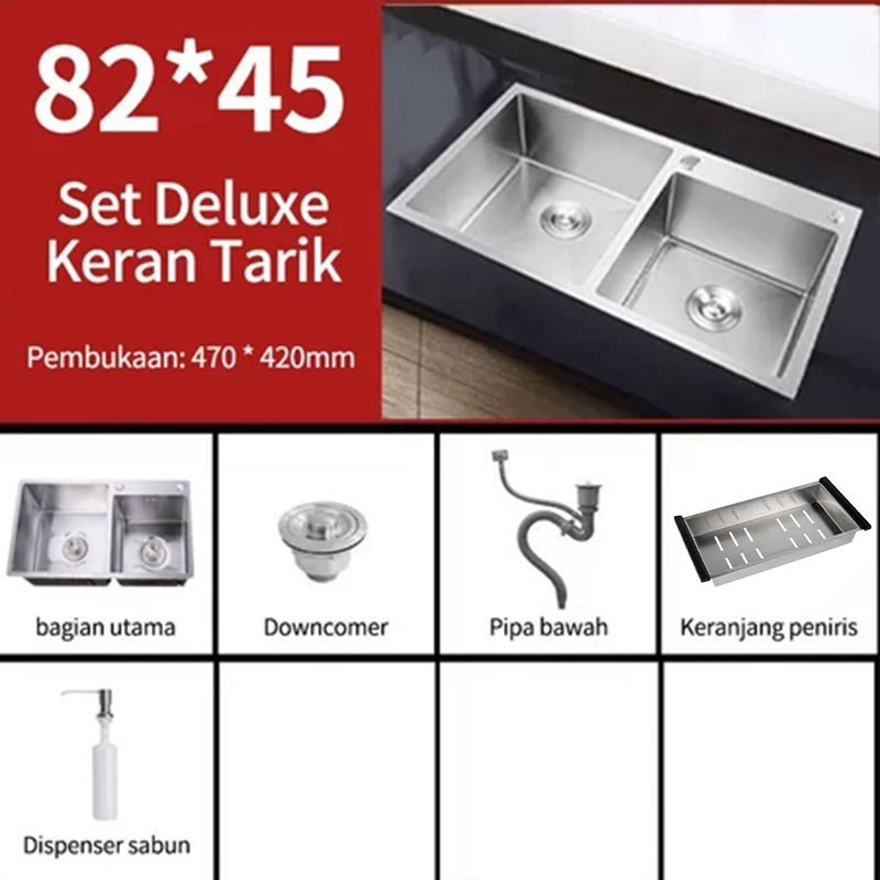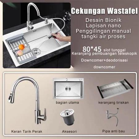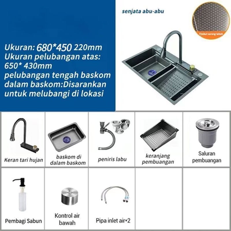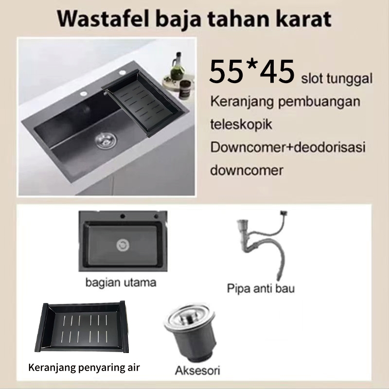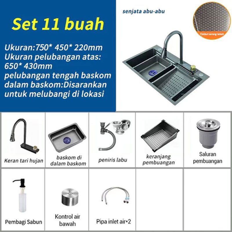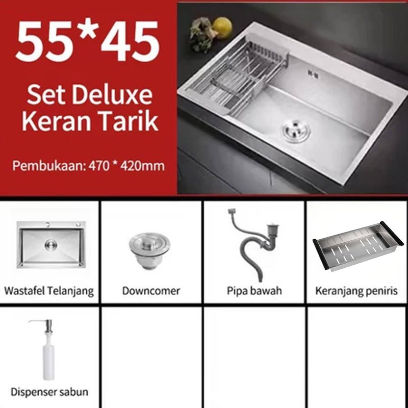 Paket Kitchen Sink Hitam/Perak Wastafel Cuci Piring Stainless/sink cuci piring Dengan Keran Tarik