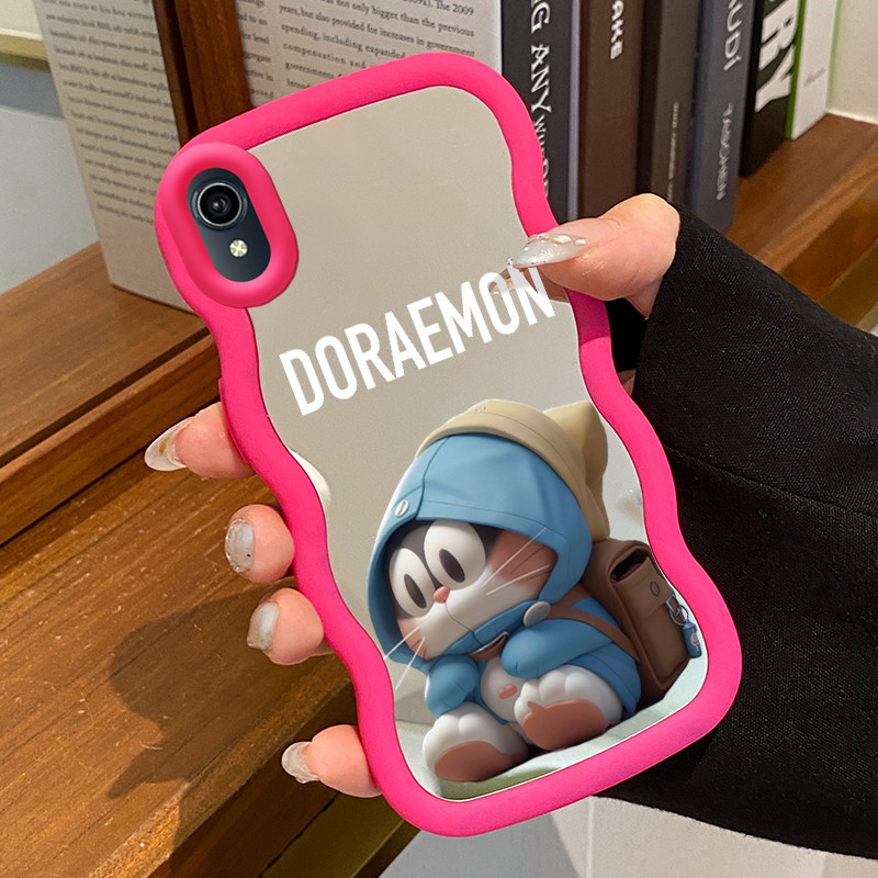 Casing Untuk VIVO Y91C Y1s Y90 Case Casing pola Kucing Biru Kesing HP Silikon Softcase Macaron Cesing cermin Kasing