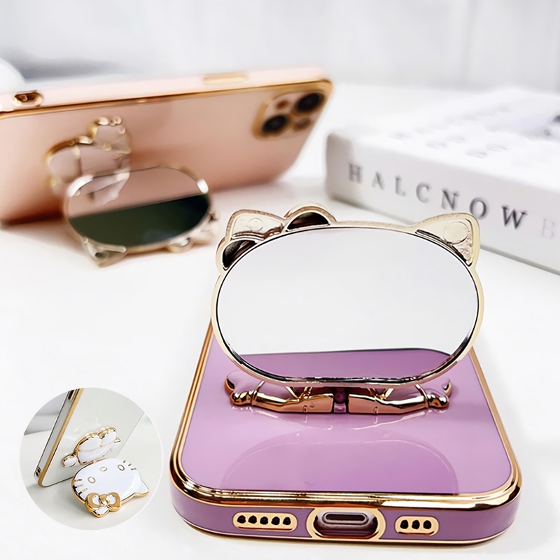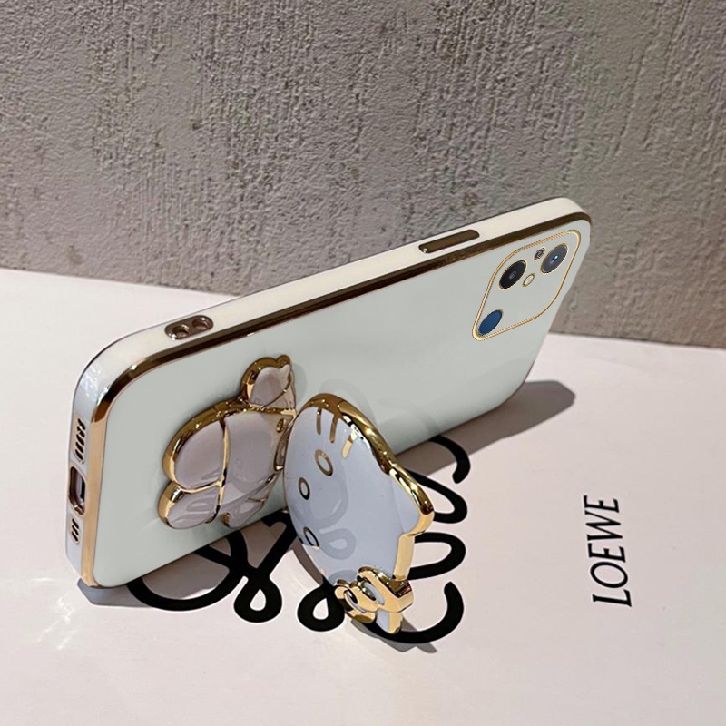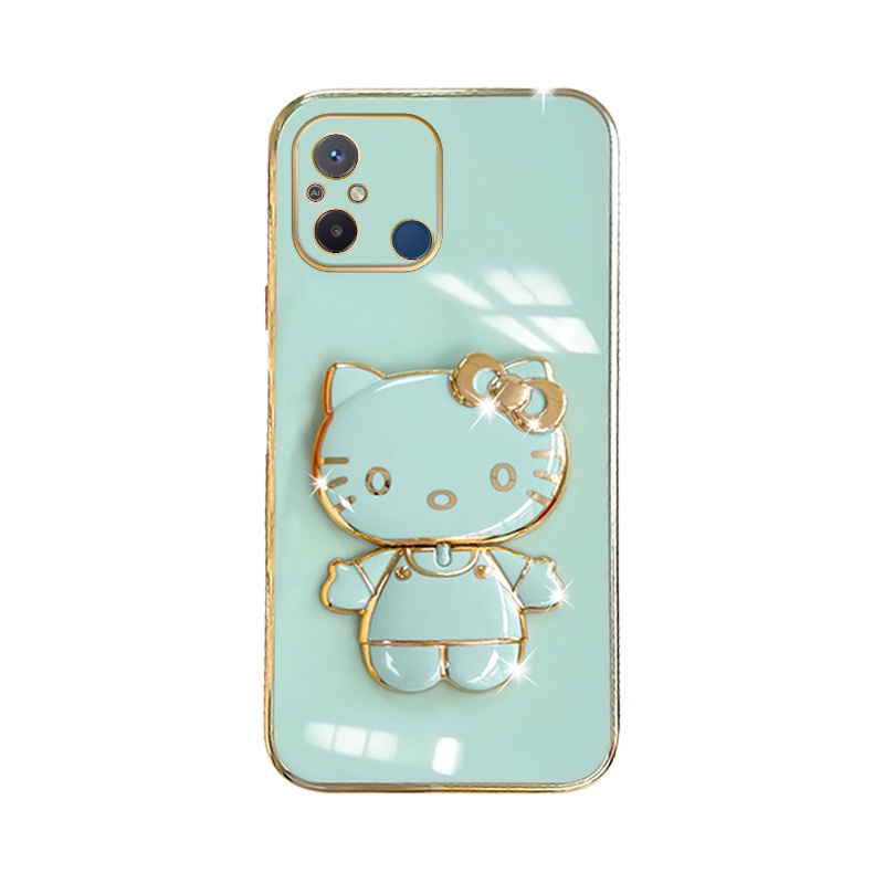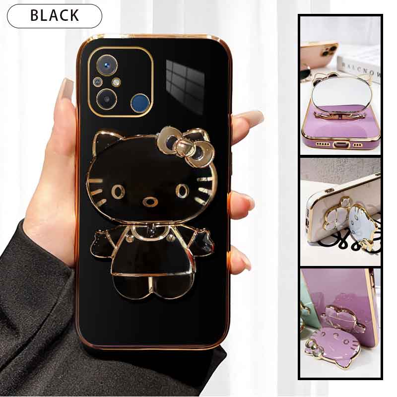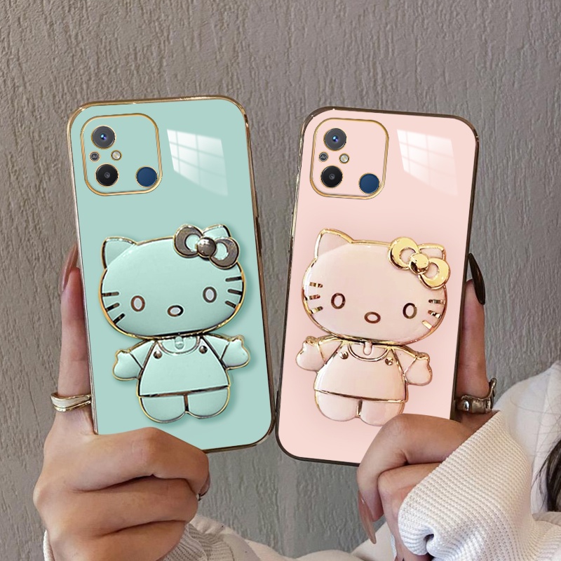 JWYNITA Stand Case Hp For Redmi 12C Holder Casing KucingKitty Softcase Pelapisan Silikon Cassing Hp Persegi Lensa Penuh Lindungi Kesing