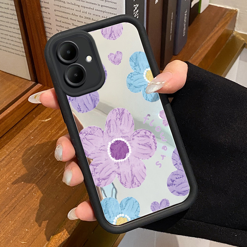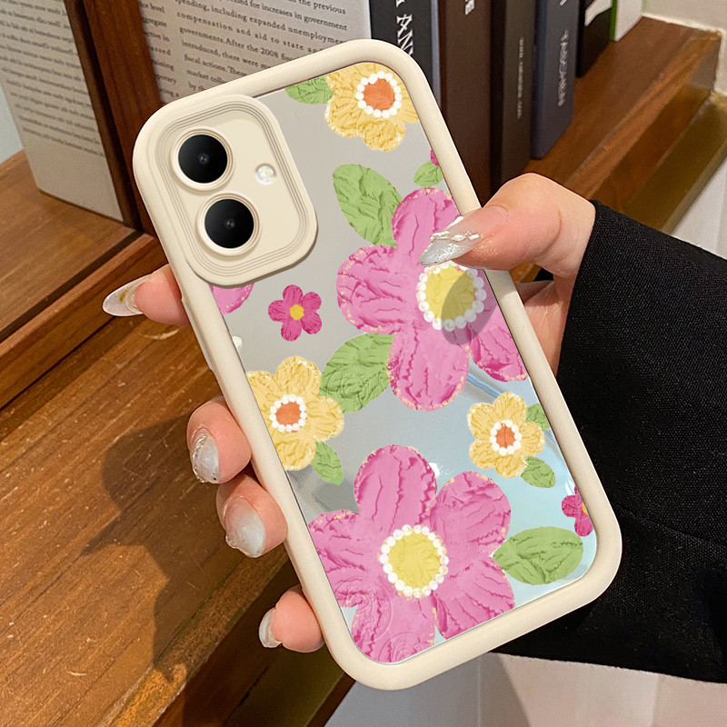 Casing Hp Untuk Infinix Smart 10 Smart 10 Plus Hot 60i Case Keras Lubang Halus Bahan Bunga warna-warni musim semi Cermin Kesing Mirror Cesing silikon Softcase Kasing