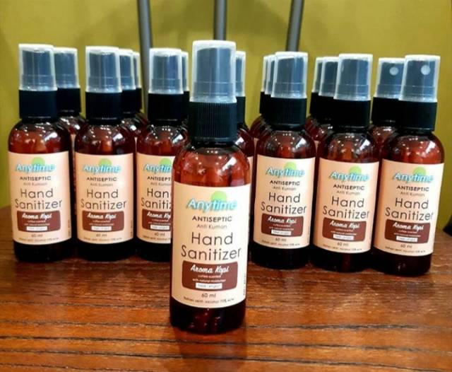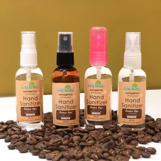 Hand sanitizer spray ANYTIME antiseptic aroma kopi alkohol 70% efektif bunuh kuman bakteri